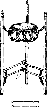 满族打击乐器。多用于寺庙和尼姑庵。鼓框为木制,形如短圆筒。鼓面直径3尺至3. 7尺不等。两面蒙牛皮或马皮,鼓面边缘钉铁钉,或用细皮绳等距离交叉拴系于鼓框上。清宫廷使用之架鼓鼓架两上端雕饰龙或龙凤形象,底座绘云纹等图案,涂白、蓝两色。演奏时双手各执1槌,立奏。