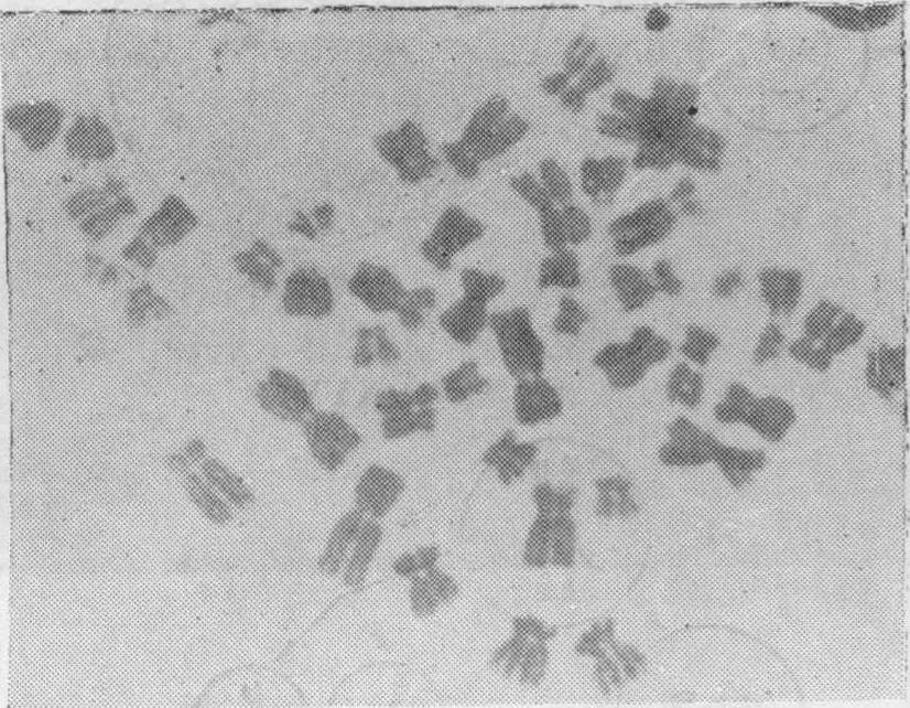 图10 一个核内复制的中期染色体照片