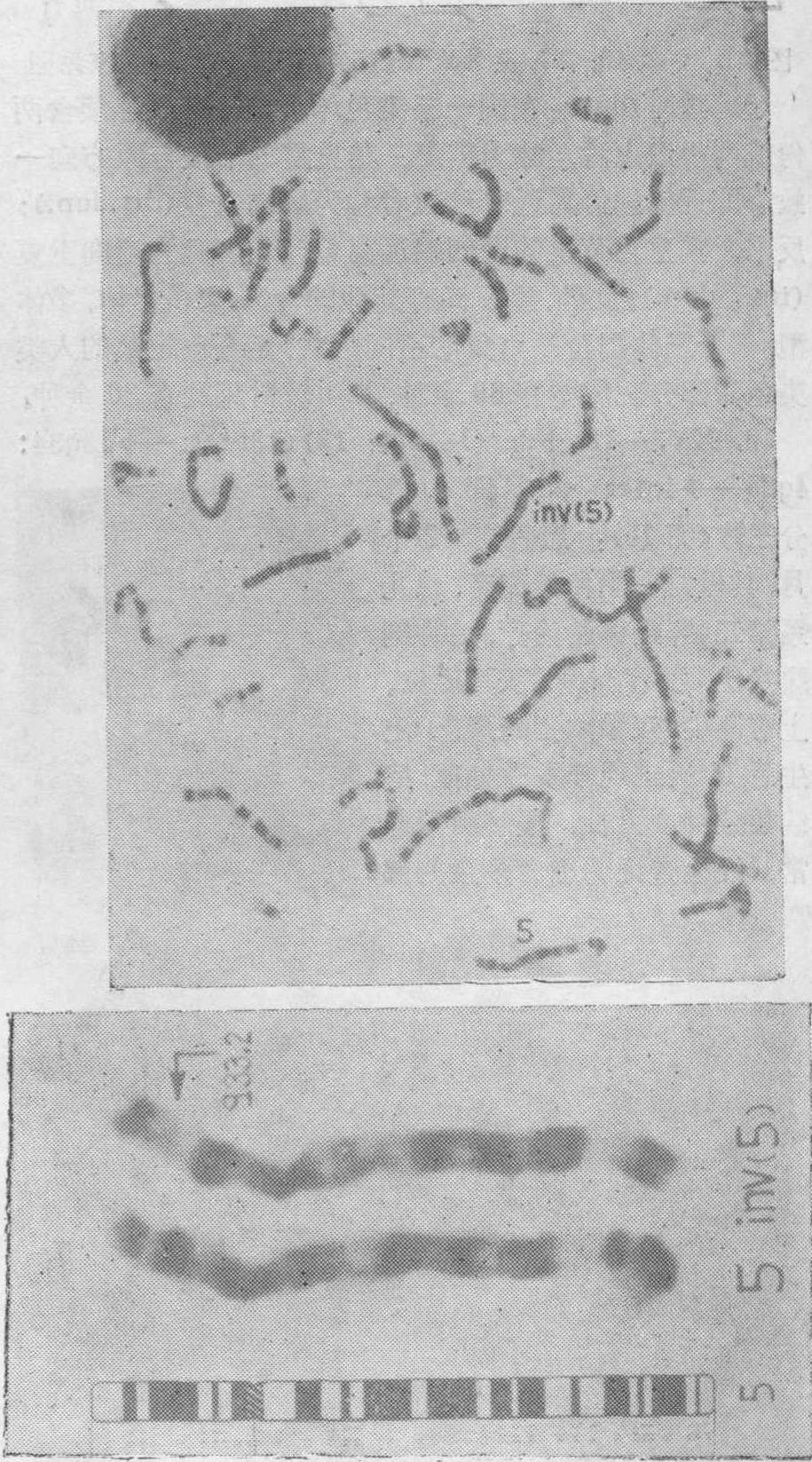 46,XX或XY,inv(5)(p15.1 q33.1):先证者,男,1979年11月7日出生,第二胎,表型正常,在新生儿普查中发现其核型为46,XY,inv(5)(p15.1q33.1)(图14A)。