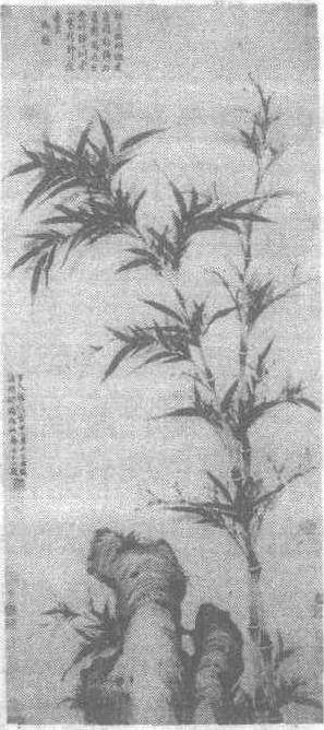 墨竹图 柯九思 ☚ 王蒙 王冕 ☛ 柯九思1290~1343Ke Jiusipoet and painter of the Yuan Dynasty 柯九思1290—1343元书画家。字敬仲,号丹丘生、五云阁吏。台州(今浙江临海)人。官至奎章阁鉴书博士,曾鉴定内府所藏法书名画。与虞集、赵孟頫为友。书法学欧阳询,雄健稳秀;画墨竹学文同一派,笔法劲挺;有时点缀树石、荆棘、野草,别饶情趣。偶作山水,亦很苍秀。存世作品有《清閟阁墨竹图》、《竹谱》等。 柯九思(元·至元二十六——至正二年 1290~1343) 浙江仙居人,一作天臺人。字敬仲,號丹丘生,又署五雲閣吏。與虞集、楊維楨等交厚。博學工詩文,善鑒識金石,雅能翰墨,尤精繪事。文宗(圖鐵木耳)遇于潜邸,及即位,大曆二年(1329)置“奎章閣”,特授學士院鑒書博士,凡内府所藏法書、名畫、古器等,咸命鑒定,賜以牙章。書法多用銳筆,姿態妙美,成一時風尚。明王世貞云: “九思四體八法,俱能起雅去俗。”《快雨堂跋》謂其書“仿率更(歐陽詢)父子,力求勁拔。”嘗書 <讀誅蚊賦詩>。著有《墨竹譜》。