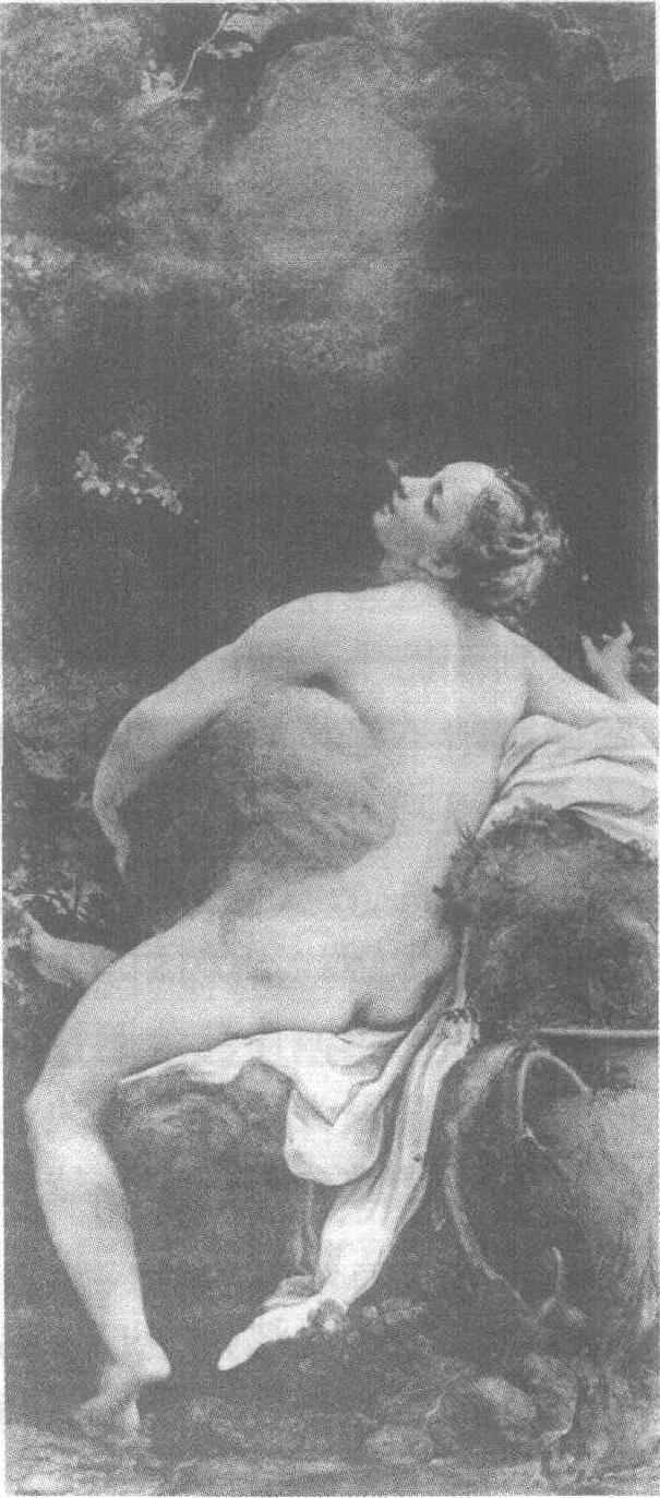 朱庇特与伊娥 柯雷乔 平日当我们遥看高高飘浮在天际的那些变化不定的云的时候,常常会产生一种超越现实而在想象中驰骋于神的世界的幻觉。据说众神就住在希腊的最高峰奥林帕斯山终年云雾缭绕的山顶上。所以,将垂天之云比作朱庇特的化身来追恋伊娥,表现神仙们的爱情故事,的确是再合适不过了。在这里,画家不仅需要有丰富的想象力,而且还需要有施色敷彩的技巧,否则是难以描绘出这种状况的。而柯雷乔却能通过微妙的阴影变化,将人物的轮廓由浓渐淡,使其从周围的环境中渐渐显露出来。这种所谓 “烟雾渲染”的方法,我们在早他一代人的达·芬奇的作品中已经看到过了,显然柯雷乔是得益于这种技法的。同时伊娥的姿势,他又是从表现 一对情侣的古代罗马浮雕萨提罗斯与尼芙中选取其原型的。画面右下角 “饮泉水的鹿”,则含有渴望神的爱的意思,是借用了中世纪基督教美术中的主题。 柯雷乔1489年出生在北意大利的小城巴马附近的柯雷乔村,1534年在同地去世。他在修业时代就吸收了故乡北意大利绘画的传统,后来又曾去罗马,受到很大的影响。他从当时拉斐尔和米开朗基罗在梵蒂冈宫刚刚完成的宏伟壁画和罗马异教文化的氛围中学到了许多东西,归故乡后开始在巴马的一些教堂里画壁画。这些壁画,构图充满动势,人体强壮有力,显示出罗马盛期文艺复兴成果在这座北意大利小城的普及。 《朱庇特与伊娥》是他接受曼图亚公爵菲德利哥·贡查加的订件所作的一系列小型油画中的一幅。这幅作品不仅仅是追求妩媚的女性形象的表现,而且也表达了一种象征的意义:大地上的万物(有限的存在),由于蒙受神的甘霖而获得天上的永恒的生命。 ☚ 提香《圣母升天》 丢勒《亚当、夏娃与动物》 ☛ |