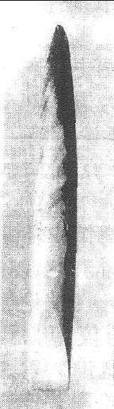 辽宁沈阳新乐遗址下层出土。上部呈圆锥体,下部为两面刃,长10.3、宽1.1、厚1.3厘米。由黑白花纹的墨玉磨制而成,细润光滑。参见“新乐遗址”、“新乐文化”。