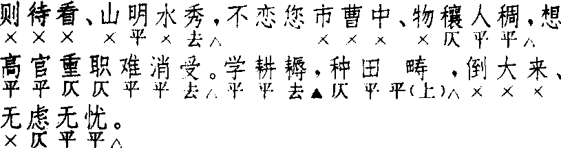 柳叶儿 柳叶儿不忽木“身卧糟丘”套  全曲六句:7 △,7 △,7 △。3 ▲,3 △,7 △。首二句有用叠字者,本曲《雍熙乐府》本:“则待要看山明山明水秀,不恋你市廛中物穰物穰人稠。”末句后有增一句者,关汉卿《望江亭》“你专医那枕冷衾寒”,句式同末句,仅此一例。亦入〔商调〕。与诸宫调不同。 ☚ 后庭花 青哥儿 ☛ 柳叶儿liǔyèr面片儿呈菱形的片儿汤。〔例〕演出从中午十二时开始,直到午夜,不备两餐,只供给一顿“柳叶儿”的夜宵(“柳叶儿”是面片切成柳叶形,浇以白肉氽卤)。(翁31) 柳叶儿〈隐〉明清江湖诸行指蒙古族人。见《新刻江湖切要·人物类》。 柳叶儿liǔ yè ér明清以来江湖社会谓蒙古族人。《新刻江湖切要·人物类》:“鞑子: 柳叶儿。”又 《切口·媒婆》:“柳叶儿:鞑子也。” |
