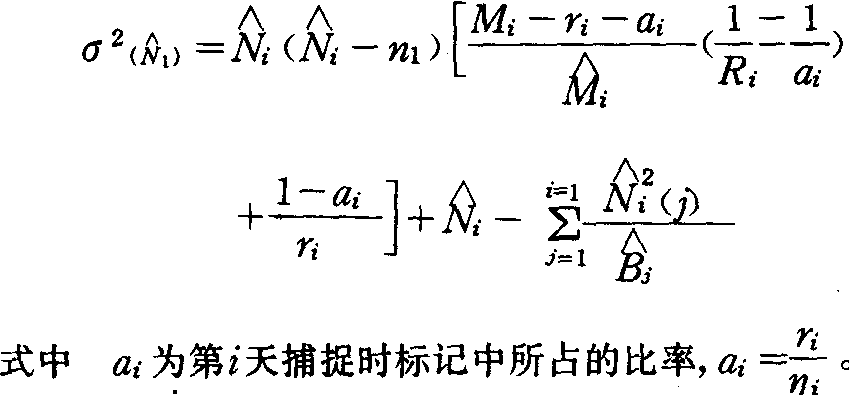 Ri= 80 70 71 109 101 108 99 70 58 44 35 表2 j日或j日以前标记的动物在i日被再捕总数计算表 (据Jolly,1965)