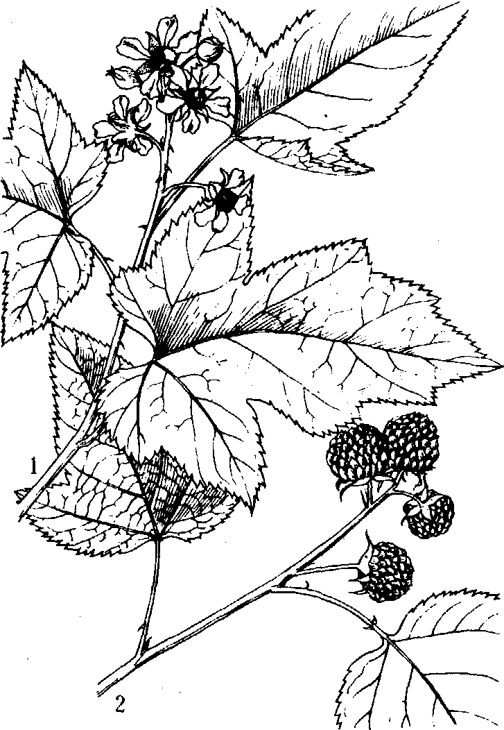 蓬悬钩子 红莓类群 聚生核果聚生在突起的花托上, 果实红色, 黄色, 黑色或紫色, 成熟时呈帽状并与花托分离。❶红树莓(Rubus idaeus L.), 广泛分布于欧洲、北美及亚洲东部,本种变种较多, 栽培的主要有二种:欧洲红树莓(R. idaeus L. var. vulgatus Arrhen.),丰产, 果大, 颜色鲜艳, 最先被驯化栽培; 美洲红树莓(R. idaeus L. var. strigosus (Michx.) Maxim.)果实小, 但抗寒、抗旱。早期栽培的树莓品种几乎全来源于这两个变种。经过几个世纪的选择培育, 现在已育成许多果大、味美、丰产的优良品种,例如JochemRoem、Malling Jewel、Malling Promise 等品种果实直径达40~50毫米。美国品种Latham果实虽稍小,但是抗寒、丰产、品质好, 欧美许多国家广为栽培。苏联的Новостъ Кузъмина、Викинг特别抗寒,品质好,另外Early June早熟, Mammoth Thornless无刺,而Indian Summer、Durham、August Red 则一年多次结果。中国品种有红树莓,在东北栽培多年, 果实虽小, 但甜酸适口, 香味浓郁, 丰产, 抗寒, 抗旱, 枝无刺, 是育种的优良种质。中国野生红树莓种质资源有2个值得重视的种:蓬悬钩子 (R. crataegifoliusBge.)(见图), 分布在东北、华北、西北、植株直立、健壮, 根系发达、抗寒, 可耐-40℃低温, 抗旱, 在荒地、路边、瘠薄干旱山坡上都能正常生长结果,·是抗寒育种、抗旱育种的珍贵材料; 库页悬钩子(R. sa-chalinensis Levl.)主产于长白山, 大兴安岭, 果实甜酸适口, 香味浓, 抗寒力强, 耐-45℃低温, 可用于抗寒育种。 ❷黄树莓, 是红树莓的一个黄色变异类型。也有许多品种, 如英国的Malling Orion, 美国的Golden Queen,中国的黄树莓等,一般不如红树莓丰产, 很少有大面积栽培的, 多见于庭院果园。 ❸黑树莓(R. occidentalis L.), 为美洲种, 果实黑色, 香味浓, 枝上散布坚硬大刺, 根系分布深, 抗旱, 很少发根蘖。一年生枝生长到晚夏向下弯呈拱形, 当梢端触地时即生根入土, 形成新株。这种特殊习性的繁殖方法, 被称为先端压条。黑树莓抗寒力较差, 适宜在温暖地区栽培,优良品种有Cumberland、New Logan、Black Knight等。其中,Black Knight 是美国20世纪70年代育成的新品种, 从仲夏直到秋末果实陆续成熟,可不断采得鲜果, 更适合于庭院栽培。 ❹紫树莓,是红树莓和黑树莓的杂交种。常比亲本生长旺盛, 丰产。繁殖习性多倾向于黑树莓。优良品种有Brandy-wine、Sodus、Clyde。 黑莓(R. allegheniensis Porter)类群 聚合小核果紧粘在花托上不分离, 果实黑色, 总状花序。人工栽培始于北美, 最初是从野生种中选择较好类型,1881年洛根(J. H. Logan)从Aughinbaugh的实生苗中选出Logan、Mammoth。19世纪末, 伯班克 (Lu-ther Burbank)育成Phenomenal。这些品种当时被广泛栽培,并且成为以后育种的重要种质材料。黑莓的主要优点是果大、味甜、树势健壮。但不及红树莓类群抗寒,在温暖地区栽培适应性较强。黑莓的刺给栽培管理者增加许多困难,成为限制这种植物扩大栽培的一个因素。所以在黑莓育种目标中,无刺和果大、质优、丰产几乎同等重要。伯班克是第一个从事黑莓无刺育种的人,1902年他首先找到了无刺小黑莓(R. canadensis),又从印度交换来的黑莓中选出一株特别高产(年产90千克)的实生苗, 定名为喜马拉雅莓(Himalaya Berry),通过杂交, 育成果大味美高产的无刺黑莓。1926年扬(B.M.Young)育成Youngberry和Boysenberry。现在的黑莓已分别衍生出Blackberry品种群,Youngberry品种群和Boysenberry品种群。例如美国的GiantThornless Boysenberry果实长6厘米,味很甜,可陆续成熟近两个月。英国又育成Tayberry, 能像红树莓那样用根插繁殖这种习性在黑莓育种中是一有利性状。 露莓(R. caesius L.)类群 比黑莓果实大, 伞房花序, 枝条蔓性, 不能直立生长, 在栽培上必须立架绑缚。其他性状与黑莓近似, 因此人们常常把它们混同一类, 或者把露莓叫作蔓性黑莓。优良品种有美国的Thornless Dewberry、Lucretia等,露莓栽培数量较少, 比黑莓抗寒性差。 |