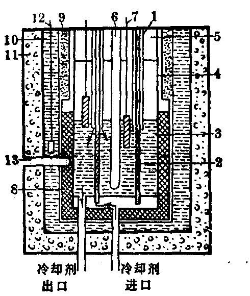 (1)游泳池式容器:池壁覆盖合金铝或不锈钢衬,使放射性物质不致往外泄漏。池中充有足够高度的水,在反应堆停止运行时能有足够的屏蔽,使工作人员能接近。池盖不密封,可以很容易地打开。多用于研究、实验型反应堆。 (2)压力壳式容器:整个容器内维持反应堆运行时堆芯所需的压力参数,使能获得较高的热效率。多用于动力堆。整个容器要求有严格的密封性。 对某些研究、实验型反应堆,堆芯容器不承受高温、高压,但也是密封的,称为罐式容器。 (3)压力管式容器: 与压力壳式容器的区别只是放置燃料元件的管道要求承受高温、高压,而慢化剂则放在承受常温、常压的容器内。 控制保护系统 反应堆的控制保护系统用来操纵反应堆启动(使核燃料裂变达到链式反应)、停止(终止裂变链式反应)以及使反应堆在一定水平下稳定运行(裂变链式反应维持一定速率)。 控制系统一般由探测元件、比较单元、伺服机构、控制棒等部分构成。探测单元多为中子探测器,用以反映核燃料裂变速率。比较单元是将探测得到的裂变速率与要求的水平比较,其差值信号输出到伺服机构。伺服机构带动控制棒、调节控制棒的位置。控制棒多用吸收中子很强的材料制成。控制棒插入堆芯的不同深度,改变对中子的吸收量,就可控制核燃料的裂变速率。 保护系统的功能是当反应堆发生严重不安全情况时,自动紧急终止裂变链式反应。通常通过对冷却剂流量、压力、温度、中子通量(及其变化速率)、放射性活度等重要参数的监测,作为保护系统工作的依据。紧急停堆通常通过快速地向堆芯插入控制棒或向堆芯注入吸收中子物质来实现。 一次回路 指直接流经活性区,用以导出堆内热量的冷却系统。它既为利用热能创造条件,也起到保护燃料元件使之不致因温度过高而烧毁的作用。除功率很低的反应堆可利用冷却剂在活性区自然对流冷却外,多数核反应堆采用强迫流动冷却剂来导热。热中子反应堆冷却剂一般为水、重水、氦气、二氧化碳等物质。快中子反应堆则采用气体或液态金属如钠、钠钾合金等作为冷却剂,使得中子不致被慢化。