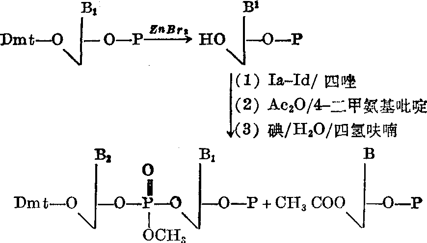 图2 用固相亚磷酸三酯法合成二核苷酸