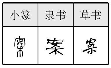 另见:摆放 学习 ☚ 家具 坐具 ☛ 案àn乌旰切,去翰。 ❶一种食器。《急就篇》“椭杅槃~。”颜注:“无足曰盘,有足曰~。” ❷几案,几桌。朱彝尊《商丘宋氏家乘序》:“~无留牍。” ❸文案,文书。嵇康《与山巨源绝交书》:“堆~盈几。” ❹压抑,止住。《史记·淮阴侯传》:“~甲休兵。” ❺按察,考查。《论衡·问孔》:“~贤圣之言,上下多相违。” ❻安定,稳定。贾谊《过秦论》:“~士息民。” ❼按照,依照。《韩非子·孤愤》:“循令而从事,~法而治官。” ❽连词。即是,就是。《荀子·臣道》:“是~曰是,非~曰非。” 〖案〗 粵 on3〔按〕普 àn ❶ 几案,矮腳長桌。許慎《說文解字》:「〜,几屬。」(几【粵 gei1〔基〕普 jī】:矮腳長桌。)司馬光《訓儉示康》:「食非多品,器皿非滿〜,不敢會賓友。」 ❷ 文書。劉禹錫《陋室銘》:「無〜牘之勞形。」(牘【粵duk6〔獨〕普 dú】:文件。) ❸ 同「按」,用手按壓,這個意思後來被寫成「按」。司馬遷《史記.魏其武安侯列傳》:「〜灌夫項令謝。」(項:頸部,脖子。) ❹ 同「按」,止住,壓抑,這個意思後來被寫成「按」。陳壽《三國志.蜀書.諸葛亮傳》:「若不能當,何不〜兵束甲,北面而事之?」(當:同「擋」,抵擋。束甲:收起盔甲。) ❺ 檢視。《史記 . 廉頗藺相如列傳》:「召有司〜圖,指從此以往十五都予趙。」 ❻ 巡視。《三國志.蜀書.諸葛亮傳》:「宣王〜行其營壘處所,曰:『天下奇才也!』」 ❼同「按」,按照,根據,這個意思後來被寫成「按」。韓非《韓非子.孤憤》:「人臣循令而從事,〜法而治官。」