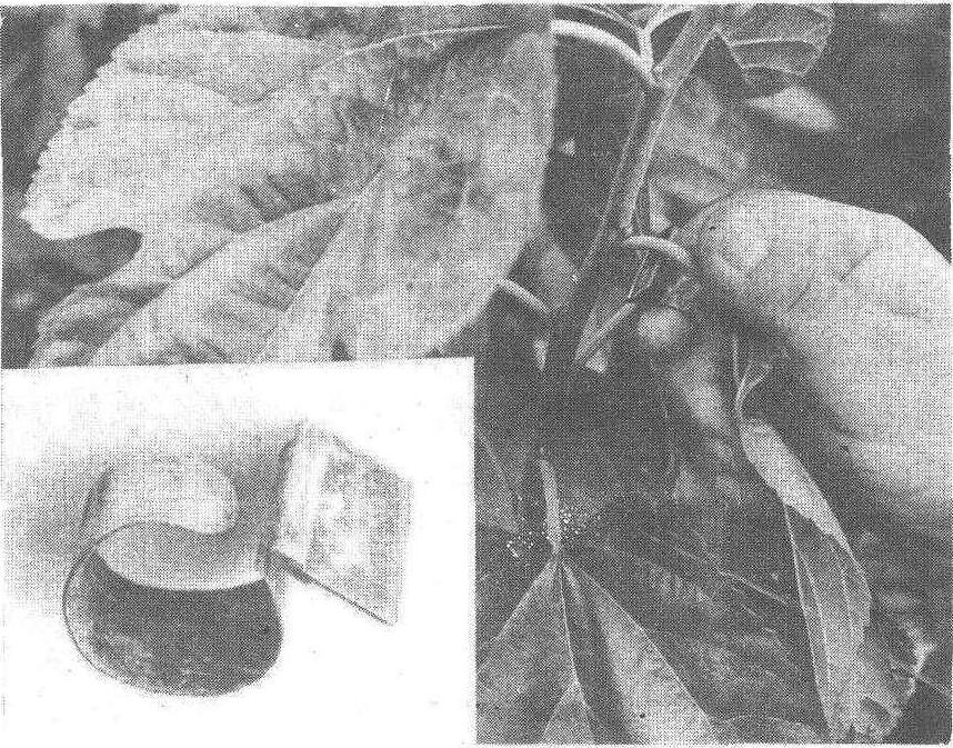图2 接桑刀 摘桑刀(摘桑器) 是夏秋蚕期采摘桑叶的工具。以薄钢片作刀片,刀上装有铁丝绕成的指圈,以便套在食指上采摘桑叶,采摘时在叶柄中部切取叶片,部分叶柄残留在枝条上,可以保护腋芽不受损伤(图3)。