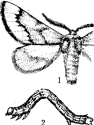 桑尺蠖 1.成虫 2. 幼虫 桑尺蠖 桑尺蠖sangchihuoHemerophila atrilineata无脊椎动物,昆虫纲,鳞翅目,尺蛾科。成虫体长16毫米,灰褐色,头小,前翅灰色,内外两边有2条暗黑色斜波状纹,外缘作不规则齿状。后翅仅有1条纹。幼虫灰褐色,前细后粗,成筒状。初孵化的幼虫为绿色,多在桑叶背面取食叶肉,使叶面呈现透明点,长大后变成灰褐色,近似树皮颜色,沿叶缘向内蚕食。越冬幼虫严重为害冬芽,仅留有芽鳞。幼虫爬行时,身体一屈一伸向前移动,在树上静止时,用1对腹足和1对尾足抓住树枝,身体斜向挺直悬空静止不动,与树枝成一斜角,形色均似枯枝,不易被天敌发现,这是幼虫的拟态本能,常做为拟态的典型代表动物之一。 ☚ 尺蠖 桦蛾 ☛ 桑尺蠖俗称“桑搭”、“造桥虫”、“寸寸虫”、“剥芽头虫”等。鳞翅目,尺蠖蛾科。危害新芽及桑叶的害虫。年发生4代,幼虫越冬。初春冬芽萌发时,越冬幼虫为害萌发新芽,严重时,整株桑芽食尽。幼龄幼虫食害桑叶,弯曲爬行,昼夜取食,3次蜕皮后,日伏夜食,沿叶缘向内咬食,往往形成大缺刻。幼虫体圆筒形,初绿色,渐粗大,呈灰褐色,长达52毫米,背面散生小黑点,第1、5腹节背面各有一横形突起,6、10腹节着生两对腹足。防治方法:1.束草诱杀越冬幼虫。2.桑芽露青前喷药防治。药剂种类有90%敌百虫1000—3000倍液,80%敌敌畏乳油1000倍液等。 |