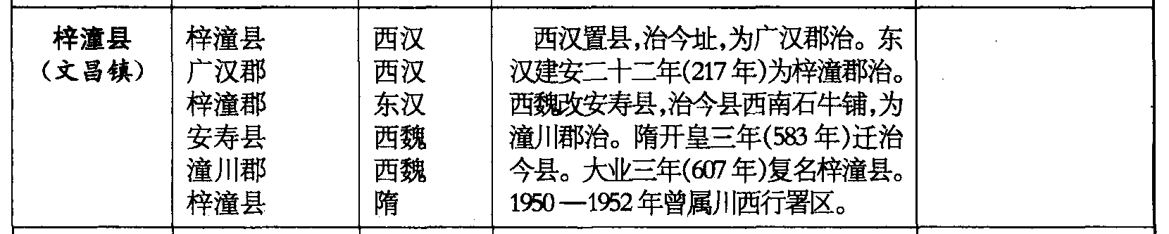 梓潼县(文昌镇)梓潼县广汉郡梓潼郡安寿县潼川郡梓潼县西汉西汉东汉西魏西魏隋西汉置县,治今址,为广汉郡治。东汉建安二十二年(217年)为梓潼郡治。西魏改安寿县,治今县西南石牛铺,为潼川郡治。隋开皇三年(583年)迁治今县。大业三年(607年)复名梓潼县。1950—1952年曾属川西行署区。
