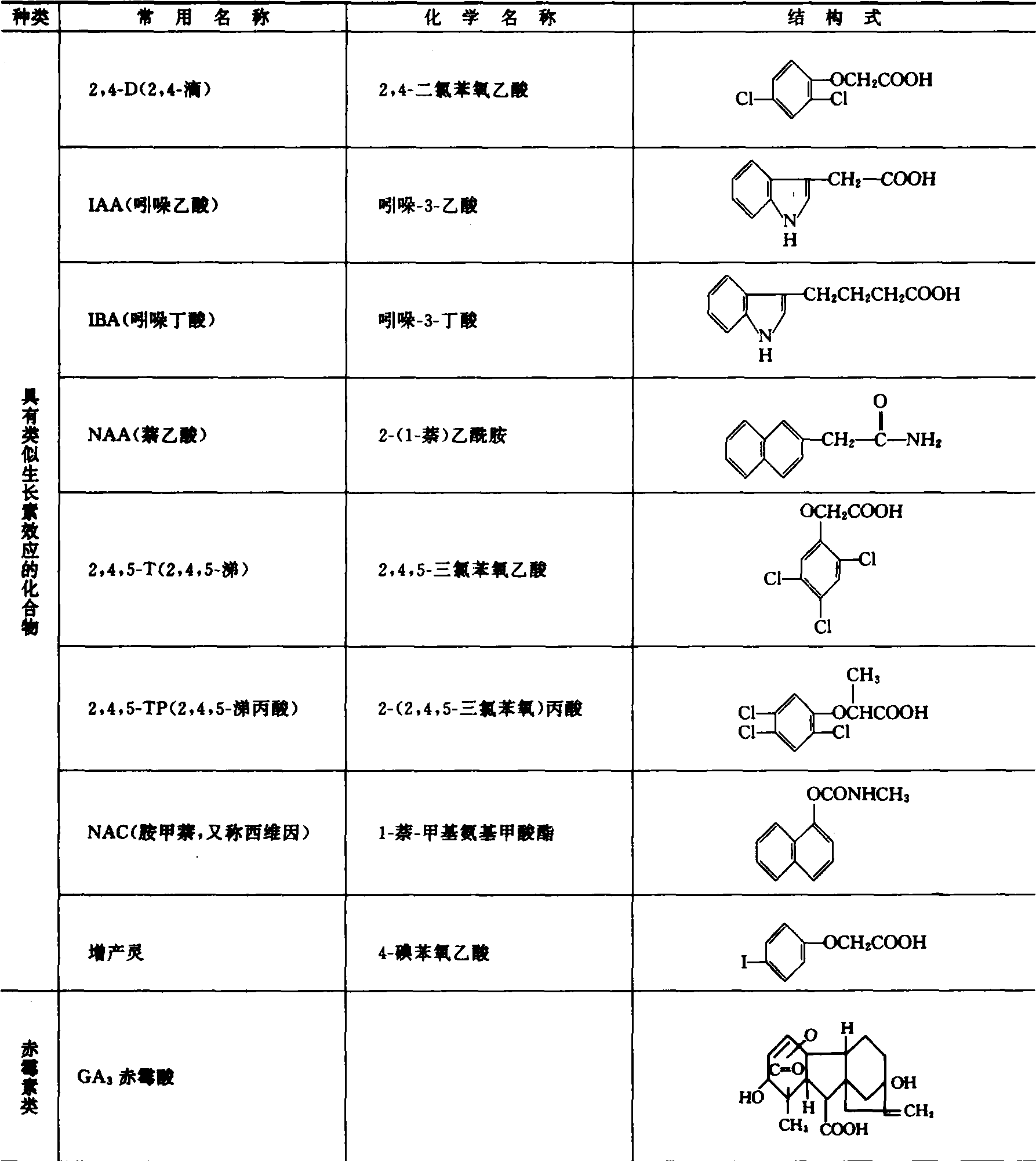 | 释义 | 植物生长调节剂plant growth regulatingchemicals人工合成的具有生理活性的类似植物激素的化合物。从外部施加少量生长调节剂,可有效地控制植物的生长发育,并且增加农作物的产量。它在农学和园艺上已得到广泛的应用。 表1 主要的植物生长促进剂