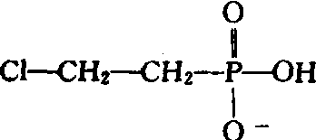 乙烯释放剂 人工合成许多释放乙烯的化合物,在一定条件下能放出乙烯,可催促果实成熟。乙烯利(2-氯乙基膦酸)是广泛应用的一种。乙烯利在pH值为4以下是稳定的溶液,当植物体内pH值达5~6时,它慢慢降解,放出乙烯气体。乙烯利结构式:
