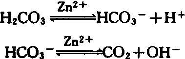锌与铜一起都是过氧化物岐化酶的组成成分。过氧化物歧化酶含有两个原子锌和两个原子铜,催化O-2基团的分解。 另外一些含锌的金属酶,包括许多脱氢酶特别是谷氨酸脱氢酶、乳酸脱氢酶、乙醇脱氢酶等。脱氢酶在三羧酸循环和氨基酸转化过程中起重要作用。 植物体内很多酶含有结合态锌、锌对不同类型的酶有活化作用,包括脱氢酶,醛缩酶,异构酶,Cu-Zn过氧化物歧化酶,碳酸酐酶,RNA和DNA聚合酶都需要锌。因此,缺锌总是和碳水化合物代谢及蛋白质合成的削弱相关联的。 随着缺锌程度的增加,叶片中碳酸酐酶活性急剧下降。此外,果糖-1,6-二磷酸酶的活性也降低,影响蔗糖和淀粉的合成: