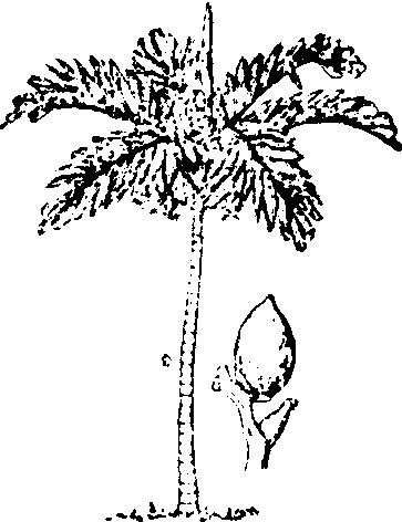 ☚ 橄榄 菠罗蜜 ☛ 槟榔bīng láng《本草纲目》果部第31卷槟榔(54)。药名。 【基原】为棕榈科植物槟榔Areca cathecu L.的成熟种子。 【别名】 宾门(《药对》),仁频(《上林赋》),洗瘴丹(侯宁极《药谱》),槟榔仁(《外台》),槟榔子(《 纲目》),大腹槟榔(《本草图经》),白槟榔(《药性论》),橄榄子(《食疗本草》),大腹子(《岭表录异》),马金南(《花镜》)。 【性味】辛,苦,温。 ❶《珍珠囊》:“味辛而苦,纯阳也。” ❷《日华子本草》:“味涩。” ❸《别录》:“味辛温,无毒。” ❹《本草纲目》:“苦辛,温,涩,无毒。” 【归经】入脾,胃,大肠经。 ❶《雷公炮制药性解》:“入 胃,大肠二经。” ❷《本草汇言》:“ 入手太阴、阳明,足阳明。” ❸《本草新编》:“入脾、胃、大肠、肺四经。” 【功用主治】杀虫,消积,行气,利水。虫积、食滞,脘腹胀痛,泻痢后重,疟疾,水肿,脚气,痰癖,癥结。 ❶《别录》:“消谷逐水,除痰癖,杀三虫,伏尸,疗寸白。” ❷《唐本草》:“治腹胀……利水谷道。敷疮,生肌肉止痛,烧灰,傅口吻疮。” ❸《日华子本草》:“除一切风,下一切气,通关节,利九窍,补五劳七伤,健脾调中,除烦,破癥结。” ❹《海药本草》:“主贲豚膀胱诸气,五膈气,风冷气,脚气,宿食不消。” ❺《本草纲目》:“治泻痢后重,心腹诸痛,大小便气秘,痰气喘急,疗诸疟,御瘴方。” 【用法用量】内服:煎汤,一钱半至三钱;或入丸散。外用: 煎水洗或研末调敷。 【成分】含6种与鞣质结合而存在的生物碱,总生物碱约0.3%~0.7%,主要为槟榔碱(Arecoline),约占75%,是槟榔驱虫的有效成分。并含槟榔次碱(Arecaidine)、去甲基槟榔碱(Guvacoline)、去甲基槟榔次碱(Guvacine)等。尚含缩合鞣质、脂肪油、红色素槟榔红及无色花青素(Leucocyanidin)等。 【药理】 ❶驱虫:槟榔碱是驱虫的主要成分,驱虫作用很强。能麻痹绦虫神经系统,对猪肉绦虫麻痹效力最强,能使全虫各部瘫痪;对牛肉绦虫只能使头部和未成熟节片完全瘫痪,而对中段、后段的孕卵节片影响不大。对短小绦虫、阔节裂头绦虫、姜片虫、钩虫、蛔虫及血吸虫等亦有效,对细粒棘球绦虫原头蚴有较强的杀灭效果。槟榔煎剂体外试验,对鼠蛲虫有麻痹作用。槟榔可麻痹曼氏血吸虫的肌肉和吸盘,对血吸虫的感染有一定的预防效果。 ❷对中枢的作用:槟榔次碱能增强氯丙嗪对大鼠、小鼠的镇静作用和γ-氨基丁酸、β-丙氨酸对麻醉猫的中枢抑制作用。并能部分拮抗戊四氮的致惊厥作用。 ❸抗菌:对堇色毛癣菌、奥杜盎氏小孢子菌、同心性毛癣茵等多种致病性皮肤真菌均有抑制作用。对突变链球菌热杀伤细胞粘附性有抑制作用,有防龋作用。 ❹抗病毒:对甲型流行性感冒病毒PR8混合后感染小鼠有抑制病毒的作用。 ❺缩瞳作用:槟榔能刺激副交感神经,使其机能亢进,有缩小瞳孔的作用,用本品配制槟榔氢溴滴眼剂,用于治疗青光眼。 ❻对胃肠作用:槟榔碱对平滑肌作用显著,能促进消化液,使胃黏膜分泌亢进,兴奋汗腺而多汗,增加胃肠张力和蠕动。并能产生轻泻作用,故驱虫一般可以不用泻剂。 ❼抗癌与致癌:对肿瘤细胞有抑制作用,有抗噬菌体作用,亦有报告认为水解槟榔碱或鞣质可能有致癌作用。 ❽其他:所含缩合鞣质,高浓度能使大鼠回肠痉挛;低浓度可增强乙酰胆碱对大鼠回肠、子宫的兴奋作用。本品有利胆作用。槟榔碱皮下注射可抑制小鼠一般活动,并可改善氯丙嗪引起的活动减少及记忆力损害。 ❾毒性:槟榔有毒,大量服用可导致动物中毒与死亡。槟榔使用过量可引起流涎、呕吐、利尿、昏睡、惊厥等反应。槟榔碱3~6mg/kg腹腔注射,能使5~30天雏鸡产生震颤,脑内乙酰胆碱含量增加。槟榔碱的MLD犬为5mg/kg,小鼠为100mg/kg。临床观察在治疗剂量除部分病入有缓泻外,多无不良反应。 槟榔 槟榔西汉长安上林苑植物之一。棕榈科。常绿乔木。花果均具芳香,果供食用。中医以种入药消积、杀虫、下气行水,主治虫积、食滞、脘腹胀痛、水肿脚气等症。原产东南亚,我国东南部亦有种植。《三辅黄图》所载上林苑奇草异木中有:“……槟榔……皆百余本。”但因南北异宜, 岁时多枯瘁。 ☚ 龙眼 橄榄 ☛ 槟榔bīnlánɡ中药名。出晋·李当之《药录》。别名大腹子、榔玉。为棕榈科植物槟榔Areca catechu L. 的种子。产于福建、台湾、广西、广东、云南。苦、辛, 温。入脾、胃、大肠经。杀虫破积, 下气行水。治肠寄生虫病、食滞、泻痢、水肿、脚气。煎服: 3 ~ 9 克; 单用杀虫可增至30 ~ 60 克。本品含槟榔碱、槟榔次碱、槟榔副碱、缩合鞣质。槟榔碱驱除猪肉绦虫有效, 可使虫体瘫痪; 对牛肉绦虫, 仅能使头部和未成熟节片瘫痪, 而对中段和后段影响不大, 可与南瓜子合用。槟榔碱尚能增强肠蠕动, 缩小瞳孔。