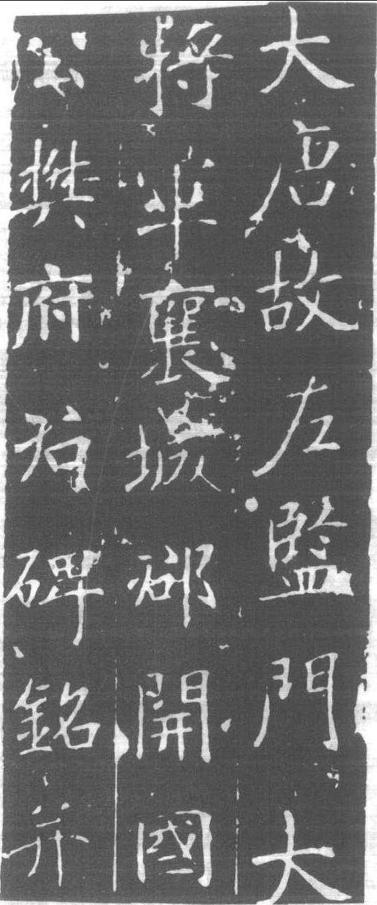 樊興碑 (局部) 唐·永徽元年(650)七月立。無撰、書人名氏,但書法酷似褚遂良,恐出學褚者所書。楷書三十一行,行六十一字,額陽文篆書“唐故大樊將軍君之碑” 九字。初立於陝西三原縣獻陵,清·道光八年(1828) 經周貞木訪得,移置學使署中,現存三原縣城内土産公司門市部。清楊守敬 《平碑記》 曰:“碑為吴荷屋 (吴榮光)訪得,筆法似褚河南(褚遂良)。”康有為 《廣藝舟雙楫》曰: “近有 〈樊府君碑〉(〈樊興碑〉),道光新出。其字畫完好,且毫芒皆見,虚和絹妙,如蓮花出水,明月開天,當是褚 (遂良)、陸 (柬之)佳作,體近 〈磚塔銘〉而遠出萬里。”《古泉山館金石文編》 評云: “楷法秀勁,頗有歐 (陽詢)、虞 (世南)、褚 (遂良)、薛 (稷)風度。”碑陰刻有清·道光二十三年 (1843)沈兆霖、郭鳳翔等觀款,為楷書一行,故可知無題記者為舊拓本。 |