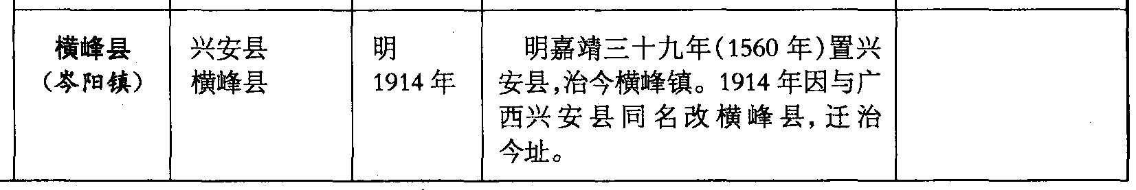 横峰县(岑阳镇)兴安县横峰县明1914年明嘉靖三十九年(1560年)置兴安县,治今横峰镇。1914年因与广西兴安县同名改横峰县,迁治今址。