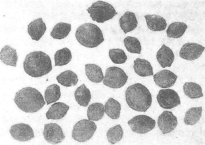 湖北江陵望山出土战国樱桃核 粪肥与河泥。樱桃的果实不耐贮藏,古籍中记有将带果蒂的樱桃封藏在活毛竹筒中,据说可以贮藏到夏季。古代樱桃除鲜食外,也加工成蜜饯。 |