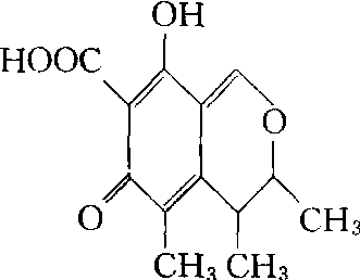 橘青霉(Penicillium citrinum)、纠缠青霉(P.implicatum)等产生的异香豆素类毒素。可引起米粒黄变为黄色针状结晶,其结构式如右。使肾脏急性或慢性中毒。