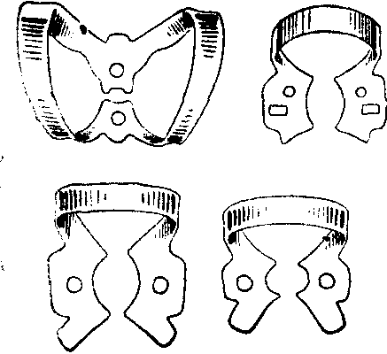 | 释义 | 橡皮防水障 橡皮防水障在进行充填和牙髓病治疗手术时,为了更有效地防止唾液进入手术区,可以使用橡皮防水障。橡皮防水障是一种薄而软的橡皮布,长宽约15cm,使用前先用打孔器打孔,一般打三个,被治疗的牙位于中央一个孔。孔的大小根据牙齿大小来定。然后将有孔的橡皮障套在手术牙和它的前、后牙上,使橡皮障套住牙颈,然后用橡皮障夹(图1)夹住手术牙,以免橡皮障滑脱。将橡皮障套上牙齿后,用橡皮障夹夹住橡皮障的四角并套在病员头部,这样可以使橡皮障张开,以便手术操作。套上橡皮障后,必须在障的下面放置吸唾器,随时吸出唾液,以利工作进行。橡皮障安放以后,可用75%酒精消毒手术区的牙和橡皮障,然后开始手术(图2)。