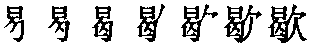 【提示】左上的曰,中间的横宋体与左右两边相接,楷体与左边相接,与右边相离。左下的匃, 不要错写成匈、 或 。 *歇xiē13画 欠部 (1) 休息: ~~脚再走|~一~再干(gàn)。 (2) 停止,停下正做的事: ~工|~业。 (3) 〈口〉 睡觉: 该上床~着了。 歇 ☚ 吹 欣 ☛ 歇xiē战国以来的形声字。从欠,曷(hé)声。声母演变如曷蝎、红项、咸喊例,韵变如曷蝎揭竭例。指休息。如:歇一会儿。引申为停止。如:歇工|歇业。组词如:歇枝(指果树在一定年限内停止结果或结果很少)。 歇★常◎常