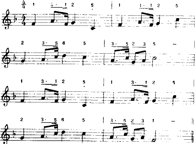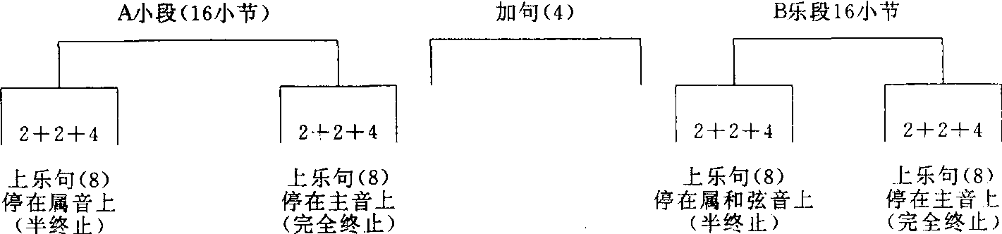 除上两首歌曲为一段体和二段体结构外,还有三段体(a,b,a)曲式及多段体曲式结构。 ☚ 旋律中的和声内含 属七和弦 ☛ |