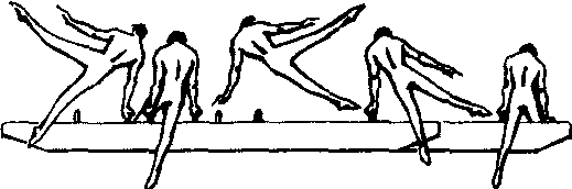 练习前可先体会由正撑开始,身体不动,反复做两手的推环跳移动作。