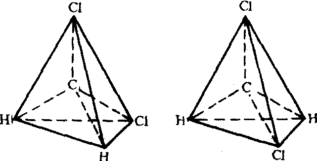正四面体学说圆满地解释了二氯甲烷不存在同分异构体的事实。早期的结构理论是以平面图形描述分子的结构的,认为4价碳原子是平面正方形结构,按此理论二氯甲烷应有两种异构体: