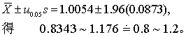 | 释义 | 正常值范围估计 正常值范围估计正常值范围的估计,就是根据正常人样本(或结合病人样本)数据,计算百分界值,以估计正常值范围。方法甚多,从实用的角度可分为两大类: 一类适用于正态分布或经变量变换能转换为正态分布的资料,最常用的是正态分布法,此外尚有对数正态分布法、正态概率纸法等;另一类适用于各种分布型资料,最常用的是百分位数法,此外尚有曲线拟合法、容许区间法等。 ±uαs, (1) 式中uα为正态曲线下面积为1-α时的标准正态(离)差,由表1查得。表1 正常值范围估计常用uα值表