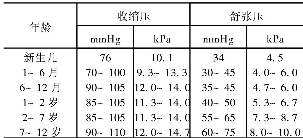 | 释义 | 正常血压 正常血压normal blood pressure指正常人血液在血管内流动时对管壁产生的侧压力。正常成人收缩压为90~130mmHg,舒张压为60~85mmHg,脉压为30~40mmHg。右臂比左臂高5~10mmHg,下肢比上肢高20~40mmHg。 小儿血压参考值 舒张压(mmHg)=收缩压的2/3~1/2 ☚ 舒张期血压 平均动脉压 ☛ |