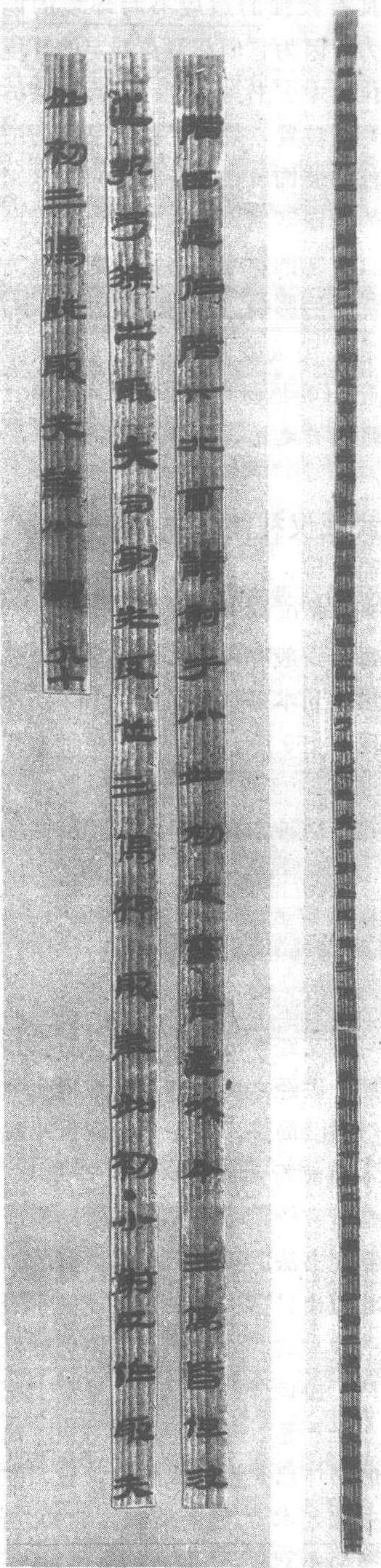 | 释义 | 武威仪礼简 武威仪礼简西汉晚期。木质。简分甲、乙、丙三种。长55.5厘米,宽0.75厘米,厚0.28厘米。每简一般容60字,下有页数,是后世刊本书页之滥觞。<仪礼>简现存469简,27300字。甲种本存七篇,398简,乙、丙本各存一篇。尤以甲种本保存最好,此简即甲本《泰射篇》第90简。1957年在甘肃省武威磨嘴子六号汉墓出土,现藏甘肃省博物馆。汉代正值我国经学倡导之时,也是古文经与今文经学派争端时期。所以抄经、讲经之风大盛,武威出土的《仪礼》简是不同于郑玄和大小戴本而流行武威地区的经学著作,是研究校勘学和汉代经学及简册制度书法的重要资料。该册的抄写虽出自多人之手,但是由于经书抄写的严格要求,书体仍然保持了协调一致的风格,基本上统一于严整、规范之中。《仪礼》简的书体已是极为成熟的汉隶,在书法艺术上,它有着独到之处,严整而不刻板,熟练而不滑浮,从字的结体上打破了左右匀停的对称模式,巧妙地将字的重心向左偏移,然后用其挑拨之笔向右开锋取势,形成了左顾右盼之态,取得了欹侧中的平衡之感。在用笔时,中、侧锋交错,藏露锋兼施,锋之转换不露痕迹,运用自如。章法处理上更见手段,其简较长,书者压扁字形,加大字距,使简书像串珠一样错落有致,构成了疏密相间的节奏韵律和幽远深邃的空灵效果。从书法角度上看,汉简有着较高的书法美学价值。从众多的汉简中不难看到,这里孕育着八分书,章草、楷书、行书的胚芽。武威简书的时代,正是由拖着小篆尾巴的古隶,逐渐向成熟的东汉分书发展的时代,因此武威简书里,既有古隶的朴拙、古质的意趣,也有艺术性较高的分书的雏形。