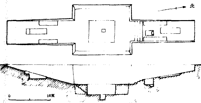 武官村大墓1950年河南安阳出土 ☚ 人殉与人祭 甲骨文 ☛ 武官村大墓商代后期王陵之一。位于河南省安阳市西北的洹水北岸商王陵区。为长方形土坑竖穴墓,南北两端各有一条长墓道。墓室口与墓道口总面积达340平方米。墓内殉葬的人数达79人。该墓虽遭盗掘,仍有青铜鼎、觚、爵、簋、卣和玉器、白陶器等随葬品出土。其中有完整的大石罄1件,上刻形象生动的虎纹。音色优美,是难得的精品。 武官村大墓商代后期商王陵墓。位于河南省安阳市侯家庄西北岗王陵区。因处于武官村北,故名。1950年由考古学家郭宝钧主持发掘。 武官村大墓在安阳殷墟武官村北,1950年发掘,面积三百四十平方米,容积一千六百一十五立方米,是商代墓葬中的中等规模的墓。此墓早年曾被盗掘、焚烧。墓主人的尸体和棺椁都早已不存在,陪葬品也大多被盗,但以人殉葬的部分保留完好。墓中有四十五具全躯,有的还有木棺和少量随葬品。这些殉葬者可能是墓主人生前的亲信侍从和姬妾一类人物。另在填土中还发现了三十四个人头,是回填墓室时杀死埋掉的。他们可能是奴隶。这座墓对研究奴隶制度有较高学术价值。 |
