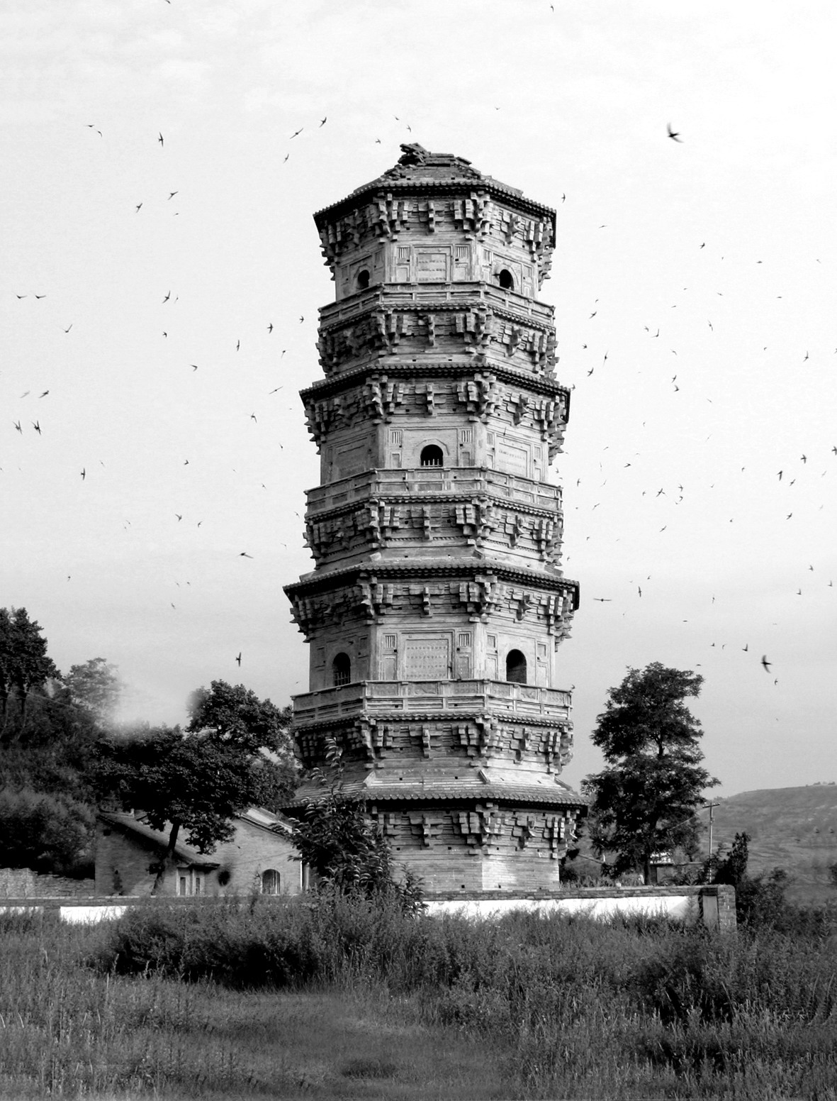 | 释义 | 武陵寺塔 武陵寺塔佛塔。在今陕西永寿县旧城。约建于唐代。楼阁式砖塔,八角,7层,各层交叉饰门洞。因年久失修,塔身残破。 ☚ 香严寺塔 法门寺 ☛ 武陵寺塔 武陵寺塔佛塔。在今陕西永寿县旧城。约建于唐代。楼阁式砖塔,八角,7层,各层交叉饰门洞。因年久失修,塔身残破。 ☚ 香严寺塔 法门寺 ☛ 武陵寺塔 武陵寺塔wulingsita位于永寿县永平乡裕丰村虎山武陵寺遗址内。因在原永寿县城内,又名永寿塔。武陵寺始建于北魏,宋以后重修或修葺。今已废。为八角七层楼阁式砖塔,残高27.5米,底层每边长2.8米。塔身底层西北向辟券门,以上每层辟四券门,隔层位置交错。二层以上每面作仿木结构三间,砌出角柱、阑额;每层增设平座勾栏,施转角和补间平座斗拱;各层当心间辟门或饰带乳钉的假板门,两侧饰直棂窗。层间叠涩檐出双排椽头与华头筒瓦、板瓦,施转角和当心间补间铺作斗拱。屋檐和平座斗拱均为六铺作出三跳;勾栏砖雕有龙凤、流云和菱格纹等装饰图案。塔顶残毁。内设旋梯可登临。明嘉靖年间地震,使塔身倾斜。现测定塔身轴心向东北偏离0.8米。1984年全面整修时,发现北宋“大观元年(1107)五月重……”墨书题记和“熙宁重宝”钱等文物。另存清道光十一年(1831)重修武陵寺碑及石佛像、石建筑构件等。此塔平座突出,高度几占每层的二分之一(多有以此视做出檐,将塔认定为7层),较为少见。1957年公布为陕西省重点文物保护单位。