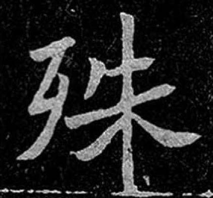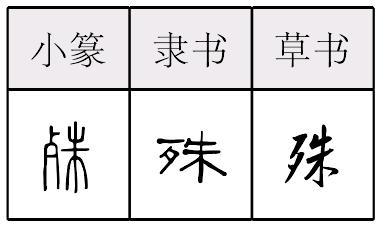 【提示】朱,中间是竖,不是竖钩。 *殊shū10画 歹部 (1) 〈书〉 断绝: 折而未~。 (2) 不同;差异: ~途同归。 (3) 特别;特出: 特~|~勋|~荣。 (4) 〈书〉 副词。很;极: ~为不安。 殊 ☚ 歺 殤 ☛ 殊shū小篆以来的形声字。从歹(歺è,枯骨义,不是好歹的歹),朱声。声母演变旁纽双声,如朱姝(shū)、诸猪暑署、庶遮例。本诛斩,杀死义。约战国后多用诛(本责备义)为杀死义。引申为断,绝。如:殊死战(指拼命的战斗)。再引申为极,很。如:殊佳|殊乐|殊可钦佩。又引申为不同。如:殊途同归。组词如:特殊。 殊★常◎常