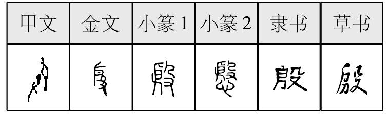 殷yīn殷❶衆也。《周禮·天官·大宰》: “乃施典於邦國,而建其牧,立其監,設其參,傅其伍,陳其殷,置其輔。” 鄭玄注: “鄭司農云:殷,治律輔爲民之平也。玄謂殷,衆也,謂衆士也。《王制》: 諸侯上士二十七人,其中士、下士各居其上之三分。”《周禮·春官·大宗伯》: “春見曰朝,夏見曰宗,秋見曰覲,冬見曰遇,時見曰會,殷見曰同。” 鄭玄注: “殷,猶衆也。” 《周禮·夏官·職方氏》: “王殷國亦如之。”鄭玄注: “殷,猶衆也。” ❷盛也。《儀禮·士喪禮》: “月半不殷奠。” 鄭玄注:“殷,盛也。” 《易·豫》: “象曰: 雷出地奮,豫。先王以作樂崇德,殷薦之上帝,以配祖考。” 鄭玄注: “殷,盛也。” (《通德堂經解》) ❸猶“大”也。《禮記·喪服大記》: “主人具殷奠之禮,俟於門外。”鄭玄注: “殷猶大也。” ❹中土也。《易乾坤鑿度》:“《萬形經》曰:蓍生地於殷。”鄭玄注: “殷,中土也。” (《漢學堂叢書》) ❺猶“多”也。《尚書古文·禹貢》: “九江孔殷。” 鄭玄注: “殷,猶多也。” (《通德堂經解》) 《尚書·禹貢》: “九江孔殷。”鄭玄注: “殷,猶多也。” (《鄭氏佚書》) ❻中也。《春秋傳服氏注十》: “孟僖子如齊殷聘。” 注: “殷,中也。” (《鄭氏佚書》)《尚書·堯典》:“日中星鳥,以殷仲春。” 鄭玄注: “殷,中也。” (《鄭氏佚書》) 殷yīn〖形容词〗 一、殷实,富足(2)。《苏秦以连横说秦》:田肥美,民殷富。——田地肥沃美好,百姓殷实富裕。《李斯谏逐客书》:孝公用商鞅之法,移风易俗,民以殷盛,国以富强。——孝公采用商鞅的法令,移风易俗,百姓因而殷实兴旺,国家因而富裕强大。 二、殷切,深厚(3)。《与于襄阳书》:何其相须之殷,而相遇之疏也? ——为什么相互等待是这样殷切,而相遇的机会是那样的稀少呢?《种树郭橐驼传》:苟有能反是者,则又爱之太殷,忧之太勤,旦视而暮抚,已去而复顾。——假如有人能不这样做,但又爱护它们太深厚,忧虑它们太过分,早上看了晚上摸,已经离开又回来看望。《报刘一丈书》:书中情意甚殷,即长者之不忘老父,知老父之念长者深也。——您信中的情意非常深厚,可见您没有忘记我的父亲,我也理解父亲深深地思念您的缘故。