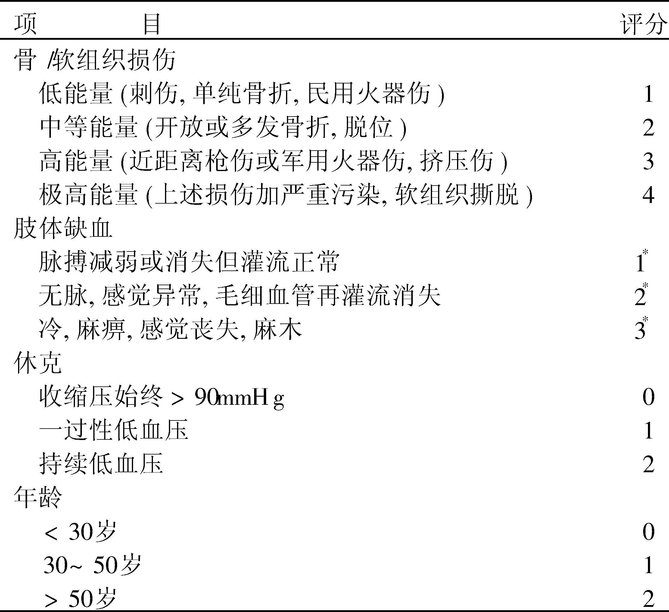 | 释义 | 毁损肢体严重程度评分 毁损肢体严重程度评分mangled extremity severity score,MESS1990年,Johansen等提出毁损肢体严重程度评分(见下表),总评分≥7分者应考虑截肢。MESS不仅可对肢体能否存活作出判断,而且能预测肢体存活后功能。 毁损肢体严重程度评分 ☚ 步行能力等级的评定 预测挽救指数 ☛ |