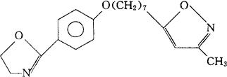 C20H26N2O3=342.44 CAS-87495-31-6 5-[7-[4-(4,5-二氢-2-噁唑基)苯氧]庚基]-3-甲基异噁唑。 Isoxazole,5-[7-[4-(4,5-dihydro-2-oxazolyl)phenoxy]heptyl]-3-methyl-. 3-甲基-5-[7-(对-2-噁唑啉-2-基苯氧)庚基]异噁唑。 3-Methyl-5-[7-(p-2-oxazolin-2-ylphenoxy)heptyl]isoxazole. 抗病毒药。 Disoxaril,Win 51,711. INN,USAN.  |