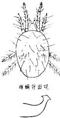 Tetranychus urticae Koch.,又称二点叶螨,棉红蜘蛛。 蜱螨亚纲,真螨目,叶螨科。世界性分布。中国分布于北京、陕西、甘肃、云南、四川、山东、山西、广东、广西和新疆。寄主植物有棉花、玉米、高粱、苹果、梨、榆等45科200种以上。 体柔软,长约500μm,卵形或菱形,黄绿色,体背两侧具褐斑,滞育雌螨为橘红色,无褐斑。须肢有胫节爪,螯肢针状。属前气门,气门沟膝状。背毛不著生疣突上,后背体背中央具菱状肤纹,肤纹突起较宽而钝圆。足4对,爪为条状,具黏毛一对,爪间突分裂成3对刺,足1跗节2对双刚毛远离,胫节刚毛10根。阳茎具端锤,远、近侧突相仿,均尖锐,端锤背部隆起点居中,为钝角(见图)。 喜高温干燥,年发生15~20代,以滞育雌螨越冬。主要用化学防治(如内吸性有机磷拌种),或苗期勤查挑治;也可选用抗螨品种。  阳茎侧面观 二斑叶螨 |