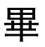 毕 毕小网长柄的捕猎器物。《小雅·鸳鸯》一章:“鸳鸯于飞,毕之罗之。”毛《传》:“鸳鸯匹鸟,太平之时,交于万物有道,取之以时。于其飞乃毕掩而罗之。”孔《疏》:“《释器》云: ‘鸟罟谓之罗。’ 《月令》云: ‘罗网毕翳。’注云: ‘网小而柄长谓之毕,毕、罗异器,故各言之。’ 《大东》传云: ‘毕所以掩兔。’ 彼虽以兔为文,其实亦可取鸟。故此《鸳鸯》言‘毕之’也。罗则张以待鸟,毕则执以掩物,故言毕掩。” ☚ 戎车 竹闭 ☛ 毕读音b·i(ˋ),为i韵目,属i—er韵部。卑吉切,入,质韵。 ❶完;完毕;完结。 ❷全;完全。如:真相毕露。 ❸古代用以捕捉禽兽的长柄网。 ❹星名,二十八宿之一。 ❺姓。 上一条: 䏶 下一条: 畢 毕〔bi〕ncad: 说~。pudncad. 毕生 〔bi sheng〕ad reux. 毕业 〔bi ye〕 bil niel. 毕畢ㄅㄧˋbì二1844①副非常;十分;极。吴语。上海〖 〗。衣裳~挺挺括‖会场里~静。上海松江:池塘里水~清‖课堂里~静无声。②名缫丝车下的绳索。古方言。《方言》第九:「车下铁,陈、宋、淮、楚谓之~。」晋郭璞注:「(车),鹿车缫丝车也。」清钱绎《笺疏》:「《玉篇》云:『紩,索也。古作铁。』据此,紩乃本字,铁其假借字也。」   毕bi❶完成,结束。同义合成词:“完毕”。李朝威《柳毅传》:“洞庭君览~,以袖掩面而泣。”(览:看。)《后汉书·郭太传》:“三年业~,博通坟籍。”(业:学业。坟:经典著作。)《荀子·议兵》:“以守则固,以攻则强,令行禁止,王者之事~矣。”(以:用来。) ❷全,都。成语:“原形毕露”。《后汉书·吕布传》:“不过旬月,军粮~尽,击之可破也。”《史记·太史公自序》:“天下遗文古事,靡不~集。”(遗文:传留下来的著作。靡:没有。) 毕畢bì❶完成;结束 △ 说~|~业。 ❷全部;完全 △ ~生|群贤~至。 ❸姓。 毕畢❶全部;完全:~生︱锋芒~露︱原形~露︱凶相(xiang)~露。 ❷结束;完:~业︱~命︱礼~︱完~︱~其功于一役。 ❸星宿名,二十八宿之一。 ○~恭~敬(形容十分恭敬的样子)。 毕bì❶ 完成,完工:毕其功于一役。 ❷ 全部:毕露|嘉宾毕至。 ❸ 姓。 毕bì程度副词,相当于全,尽。《七谏·怨世》:“羌两足以毕斫。” 毕bi毕竟 毕力 毕露 毕命 毕生 毕肖 毕业 毕姻 毕志 哀毕 礼毕 默毕 完毕 毕业式 毕恭毕敬 毕力同心 毕力以赴 毕生不忘 毕业典礼 毕业证书 锋芒毕露 原形毕露 毕其功于一役 毕bì❶ 完结;终结:当下李纨、迎、探等姊妹们亦也来定省~,各自归房无话。 (七·162)说话时,刘姥姥已吃~了饭,拉了板儿过来,舔舌砸嘴的道谢。(六·145) ❷全;尽:倏尔神鬼乱出,忽又妖魔~露。(十九·404)那媳妇越浪,贾琏越醜态~露。(二一·474)