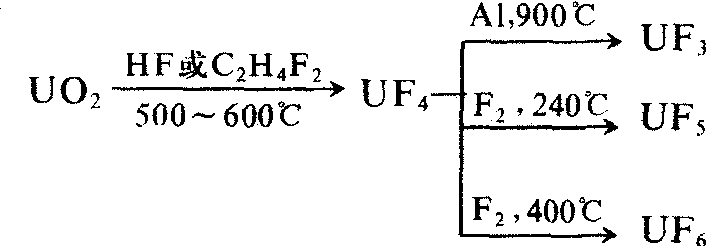 指氟和铀的二元化合物,主要有三氟化铀、四氟化铀、五氟化铀和六氟化铀。它们可以通过下述方法制取: