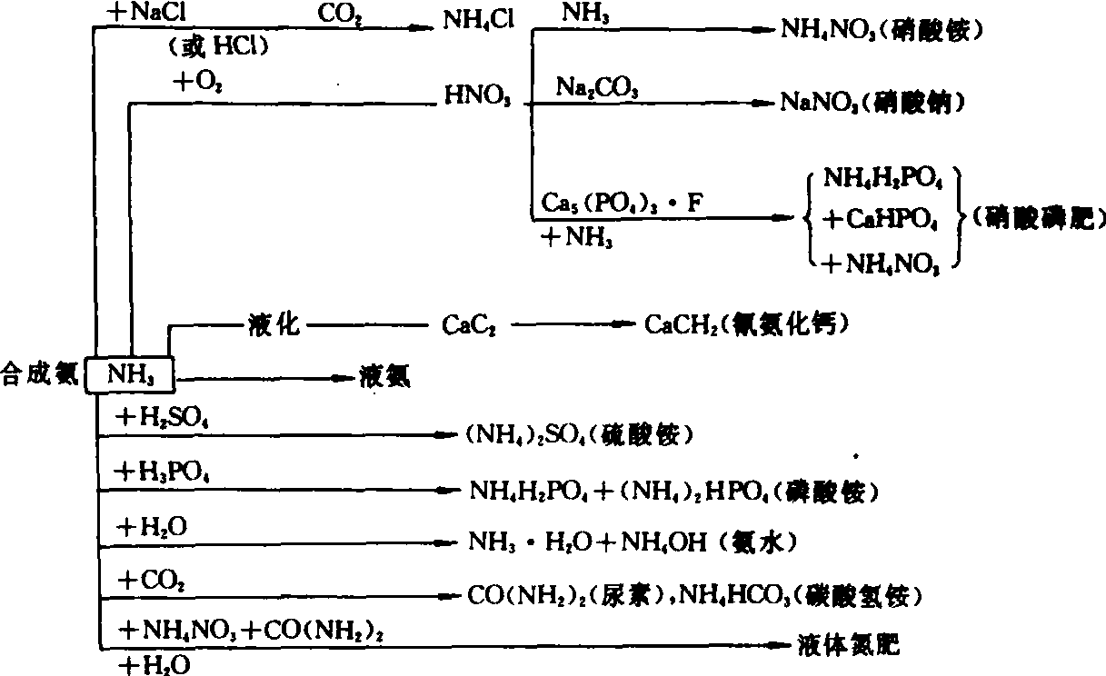 硝铵态氮肥的共性是:❶助燃烧和爆炸性; ❷吸湿性强; ❸遇热或碱性物质时会分解出氨气,故在碱性和石灰性土壤中也会发生氨挥发损失; ❹作物吸收后呈生理中性反应,属生理中性氮肥; ❺同时含有NH+4和NO-3,除了硝铵态氮兼宜的作物以外,也是一般旱地作物较理想的氮肥。与硝酸铵相比,其余的两种硝铵态氮肥的助燃烧、爆炸性和结块性较低,松散性也较好。 硫硝酸铵为等摩尔数的硫酸铵和硝酸的复盐,分子式为(NH4)2SO4·2NH4NO3。商品名称为列那硝、蒙丹硝。目前在欧美国家应用较多,中国尚未生产。产品通常为淡黄色或黄色颗粒,易溶于水,吸湿性和燃烧性均明显小于硝铵;松散性好,不易结块,便于贮存和使用。含氮量一般为25%~27%。其中18%~19%为铵态氮,7%~8%为硝态氮,故属生理酸性氮肥,在受热和碱性物质的作用下,也会分解出氨气。其农化性质介于硫铵和硝酸铵之间,适合施用于一般土壤和作物;作基肥、追肥均可,但以作追肥为好,用法同硝铵。施用量视作物、土壤肥力等情况而定。 硝酸铵钙又名石灰一硝酸铵。为硝酸铵和石灰石(或白云石)粉的熔合物,也可由硝铵与适量的石灰粉、白云石粉混合制成。成分为NH4NO3和CaCO3。一般组成是NH4NO3占55%~60%,CaCO3占40%~45%;含氮量约为20%,呈灰白色、灰褐或灰绿色粉末或颗粒;能溶于水,水溶液呈弱碱性反应;吸湿性较硝酸铵强,但其持水量大,故不易结块,且在较好的贮存条件下,仍能保其较好的散落性;每立方米肥料重量约1.2吨。硝酸铵钙适用于一般土壤,在缺钙的强酸性土壤上效果尤佳。一般做旱地作物追肥,肥效与硫酸铵相当;用在水田则不及硫酸铵。施用时可配施磷肥,但因其含碳酸钙会降低后者水溶性磷含量,故两者不要混施。 酰胺态氮肥 养分标明量为酰胺形态的氮肥。包括尿素及其衍生物脲甲醛(UF)、脲异丁醛(IBDU)、草酰胺等一些缓释氮肥。酰胺态氮肥含氮量高,物理性较好,贮运和施用方便,成本低,能不同程度地溶于水,并在土壤中能较快地转化为更易为作物吸收的铵态氮。故其肥效介于硝铵态氮肥与氰氨态氮肥之间。 氰氨态氮肥 养分标明量为氰氨形态氮的氮肥。专用作氮肥的氰氨态氮仅有氰氨化钙(石灰氮);另一氰氨态氮双氰胺则试用于作脲酶抑制剂。氰氨态氮难溶于水,其主要成分和水解中间产物对农作物都有毒害作用,在土壤中须经彻底转化才能为作物吸收利用,肥效缓慢。 氮溶液 养分标明量为多种形态氮的溶液肥料,亦称为氨络物。由硝酸铵、尿素或其它铵盐溶于液氨、浓氨水或水中混合而成的一种液体氮肥。呈无色透明或带黄色,含氮量范围较宽,一般在30%~40%,高者达50%以上。氮溶液有统一的命名规定。例如414(19-66-6)氮溶液,表示其总氮量41.4%,指由 19%氨、66%硝酸铵和6%尿素配制而成。按其游离氨浓度又分为有压和无压氮溶液两种,前者含有游离氨而产生明显的蒸气压,在操作温度下蒸气压较高,需备有高压处理装置和容器;后者不含游离氨,无须用高压罐和高压装置进行处理和贮存。与液氨和氨水原液相比,氮溶液的主要特点是:❶溶液的pH值比氨水低而含氮量比氨水高; ❷蒸气压相对低(15℃时约在0.4×105~1.5×105帕之间)、氨的挥发性较小,故贮运中一般无需用耐高压容器; ❸对钢仍有腐蚀,因而装运容器应以不锈钢和铝制的装酸槽车为宜; ❹当温度低至某一程度时,氮溶液中的可溶性盐会出现盐析现象。这种盐析温度决定其一年当中最适宜的室外贮存和田间施用时间。因具上述特点,它的发展速度比液氨和氨水为快,正逐步成为世界上重要的氮肥品种之一。 合理施用 根据作物特性、土壤性质和气候等方面的差异,采用相应的氮肥品种和施用量,施肥时期及施用方法,是合理分配和施用氮肥的基本依据。 作物营养特性 作物种类、品种和生育期不同,对氮素的需求量不一。水稻、小麦和玉米等谷类作物,需氮量较多,甘蔗、叶菜类、桑、茶等需氮量更大,而豆科作物(含绿肥和饲料作物)则需要量较少。一般作物的营养期需氮量高于生殖生长期,故应根据作物不同生育阶段,看苗分次施用氮肥。氮肥施用过量,容易引起贪青迟熟,病虫害增多,从而导致减产和产品品质下降等不良后果。 不同作物种类、品种和生育阶段,对氮素形态及其伴随的副成分的反应也有差别,因而对氮肥品种的适宜性也不同。小麦、玉米等各类作物,施用铵态氮、硝态氮及酰胺态氮(尿素)都能获得好的效果。烟草施用同时含有铵态氮和硝态氮的肥料,可以改善烟草的品质(如味香、燃烧性好);但烟草忌用含氯的各种氮肥。马铃薯既喜铵态氮,又需硫较多,而氯对其淀粉形成有影响,故以施用硫酸铵等含硫不含氯的铵态氮肥为佳。甜菜及 一些蔬菜作物,对硝态氮的吸收利用效率好,宜施用硝态氮肥,尤其是甜菜更宜施用含有钠离子的硝态氮肥。 土壤性质 土壤中可供植物吸收的氮绝大部分是铵态氮和硝态氮,其数量主要取决于氮肥的施用量和土壤有机氮矿化速度,生物固定及损失等转化途径之间的平衡状况。土壤氮的主要转化途径见图2。 土壤的供氮特性和氮肥的增产效益是土壤氮素转化和氮肥施用等综合作用的结果。就中国多数土壤的供氮和氮肥效益而言,将氮肥优先用于中、低产地区或耕地,其增产效益显著高于集中用在高产地区或小面积高产耕地。此外,土壤的一些具体特性也会影响氮肥增产效果,如在酸性土壤上,化学碱性和生理碱性的