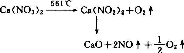 硝酸钙最早生产于挪威,故名挪威硝石。硝酸钙通常为硝酸工业或冷冻法生产硝酸磷肥的副产品,也可由氢氧化钙或碳酸钙直接中和硝酸制成。分子式为Ca(NO3)2·4H2O,又称为四水硝酸钙,含氮量为13%左右。西欧各国使用的硝酸钙,还在硝酸钙中加入4%~7%NH4NO3制成的颗粒状复盐[5Ca(NO3)2·NH4NO3·H2O],含氮15.5%。硝酸钙为白色或略带其它颜色的结晶或颗粒,极易溶于水。其溶解度受温度的影响极小。易吸湿,含水量2%的硝酸钙在25℃吸湿的相对湿度仅为43%。故在包装、贮运和使用时,需特别注意密封、干燥等防潮措施。硝酸钙也属一级无机氧化剂,遇有机物、硫磺等易燃物,也有助燃和爆炸性。其对热的反应比硝酸钠稳定,常温下不分解,加热到561℃以上时,才能分解为CaO和NO气体: