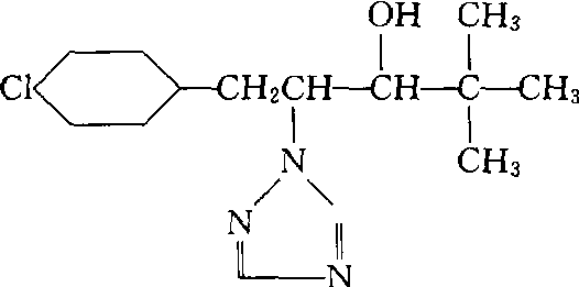| 释义 | 氯丁唑paclobutrazol PP333又称多效唑。一种高效低毒的植物生长延缓剂和广谱性杀菌剂。分子式为C15H20N3OC1,化学名称是(2RS,3RS)-1-对氯苯基-2-(1,2,4-三唑-1-基)-4,4-二甲基戊醇-3。结构式如下。纯品为白色结晶,难溶于水,可溶于氯仿和二氯甲烷等极性有机溶剂。为赤霉素生物合成的抑制剂,具有延缓植物生长,抑制茎的伸长,促进分蘖,延缓衰老,增强植物抗倒、抗逆能力等效果,也是有效的杀真菌和杀细菌剂。主要通过木质部运输,故以施于土壤为宜。在农业和园艺上已被广泛应用。