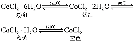 又称二氯化钴,化学式CoCl2,是钴 (Ⅱ) 氯化物。呈淡蓝色粉末,相对密度为3.356,在氯化氢气氛中熔点为724℃,沸点为1 049℃,易升华,溶于水及乙醇、丙酮等有机溶剂。水合物多,粉红色六水合物CoCl2·6H2O是常见的一种,受热后便失水,显蓝色,转变温度为: