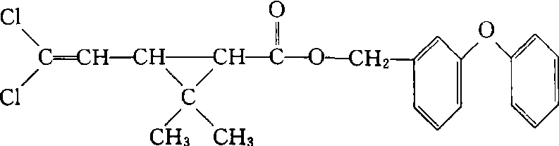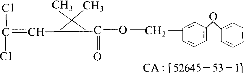 性能 无色结晶至无色或浅黄色粘稠液体,熔点约35℃,沸点220℃/6.67帕,密度d201.190~1.272,20℃时蒸气压为1.3×10-6帕,闪点大于200℃,一般原药中约含有60%反式异构体和40%顺式异构体。对光稳定,在近窗处暴露于空气中,半衰期可达三星期以上,紫外光、可见光直接照射,半衰期则缩短,50℃贮存2年稳定,弱酸性和中性介质中较稳定,碱性介质中易分解,pH4的介质中最稳定。几乎不溶于水,易溶于甲醇、乙醚、丙酮、二甲苯等有机溶剂。对高等动物低毒,急性经口毒性取决于试验时药剂的载体、有效成分顺反比率、试验动物种类、性别、年龄等,原药对大鼠急性经口LD50为430~4000毫克/千克,对大鼠急性经皮LD50大于4000毫克/千克,对兔急性经皮LD50大于2000毫克/千克,对兔皮肤无刺激作用,对眼有轻度刺激作用。在试验剂量内对试验动物未发现致畸、致突变和致癌作用。对人体每日允许摄入量(ADI)为0.05毫克/千克。对鱼类等水生生物、蜜蜂、家蚕高毒,对鸟类低毒。与含氰基结构的拟除虫菊酯相比,杀虫活性相对较低,属神经毒剂,具有触杀和胃毒作用,还有杀卵和驱避作用。无内吸传导和熏蒸作用。击倒速度较快,高浓度时杀害虫幼虫、成虫和卵,低浓度时能使害虫拒食、使成虫不产卵。杀虫谱广,对鳞翅目、鞘翅目、双翅目、半翅目、蜚蠊目等多种农业害虫和卫生害虫有效,对螨类无效。 应用 加工成乳油、超低容量液剂、可湿性粉剂、粉剂、烟剂、气雾剂等剂型使用。主要用于棉花、蔬菜、果树、茶树、烟草、林业等作物,防治棉铃虫、棉蚜、粘虫、玉米螟、菜青虫、菜蚜、柑桔潜叶蛾、食心虫、茶尺蠖、茶毛虫、烟青虫、烟蚜、黑松毛虫、毒蛾类等。残效期6~10天。对蚊、蝇可采用直接喷射或熏杀,对蜚蠊一般采用滞留喷射,也可直接喷于虫体,对白蚁可采用滞留喷射或用药液灌注蚁穴。防治卫生害虫时,与胺菊酯混配使用,既可增强击倒效果,又可降低氯菊酯用量。施药时喷雾要均匀,对钻蛀性害虫应在幼虫蛀入作物前施药。 氯菊酯permethrin又称二氯苯醚菊酯、NRDC、143、Pounce。化学名称:3-苯氧基苄基-2,2-二甲基-3-(2,2-二氯乙烯基)-1-环丙烷酸酯。化学结构式如下。工业品是淡黄色油状液体,含有(±)、顺式及反式4种光学异构体。熔点约35℃,沸点198~200℃/40.0Pa,25℃时蒸气压453.3×10-7 Pa,密度1.190~1.272(20℃),溶解度30℃时水中的溶解度0.007±0.002 mg/L。易溶于二甲苯、丙酮、甲醇、乙醚。对光稳定,农田残效期6~7天,对高等动物低毒,急性口服LD50大鼠为1 200mg/kg,经皮LD50大鼠>500 mg/kg、小鼠为600 mg/kg,吸入LD50大鼠>23.5 mg/L。静脉注射LD50大鼠>450 mg/kg。对鱼类剧毒虹鳟LC50为0.009 mg/L(96 h)、蓝鳃LC50为0.0032mg/L。对禽类低毒,鹌鹑急性口服LD50>1 350 mg/kg,使用10%乳油含有效成分10~50 mg/kg,防治稻、麦、棉、果树、蔬菜、林木及经济作物上的蚜虫、叶蝉、飞虱及黏虫、小地老虎、棉铃虫、棉红铃虫、果树食心虫类、烟青虫、菜青虫、小菜蛾等,还可以配制油剂及气雾剂防治卫生及牲畜害虫,如蚊、蝇、蟑螂、臭虫、厩蝇、牛虻、鸡虱、狗蚤、头虱及体虱。自从70年代中期在世界各地使用以来,部分地区的棉铃虫、棉红铃虫、棉蚜、稻飞虱、菜蚜、库蚊,美洲大蠊,家蝇已经产生抗药性群体,此外已经证实与其他除虫菊酯有明显地交互抗药性。