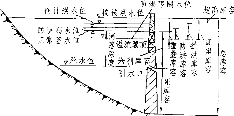 水库特征水位和相应库容示意图 水库Reservoir拦洪蓄水和调节水流的水利工程建筑物。在河流上或湖泊出口处修筑水坝而形成。水库的水可用于田园灌溉、市民饮水和工业用水,也可用于发电、建立娱乐设施、防洪和野生动物生态环境保护。通常根据3个基本的客观标准进行分类:最大深度、洪泛区和最大容水量。大型水库为特定目的而有不同的水位,以保证在一年的某一个时期水库内存有足够的水用于某一特定的目的,比如,夏季娱乐、灌溉或发电等。水库的选址必须进行仔细严格的科学论证,以决定在建成之后是否能满足设计需要,全面估计可能创造的效益。通常,研究工作以月份为单位进行,研究人员要根据50年~60年的水文和气象记录衡量水库在干旱或洪涝条件下可能发挥的作用。研究的结果将决定筹建中的水库在再度发生灾害时能否正常运行。为了在洪涝期间分洪排涝,水库都配有泄洪道。泄洪道通常被设计为有能力排泄当地可能发生的最大洪水。 水库 水库shuiku人工蓄水体,又称人工湖泊。自然条件下的径流过程往往与人类需求不相适应,修建水库的根本作用是把多水年(期)的径流蓄存在水库内,到少水年(期)再有计划地放出去,从而改变天然径流的分配过程,这种作用称为径流调节作用。水库通过径流调节作用,达到防洪、供水、灌溉、发电、航运等兴利除害的效益。 中国水库等级