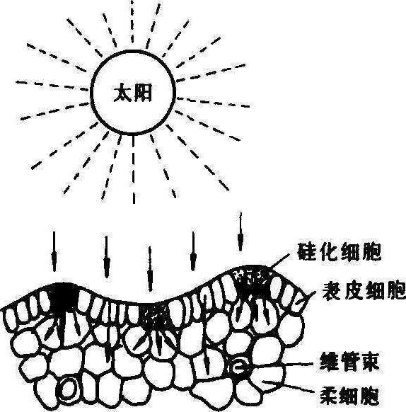 图3 硅化细胞(×10)的光散射效果 缺硅症状 缺硅水稻外表无特殊形态症状,主要表现叶质变薄柔软,披散下垂,雨露时尤为显著;茎秆较弱,易遭病虫危害,结实率下降,秕谷增加,稻谷色泽灰暗,不饱满,产量较低。在缺硅土壤上以增施肥料(化学氮肥)来提高产量,上述症状表现更为明显,甚至最终导致病虫滋生和倒伏减产。 缺硅土壤 主要分布在长江以南稻区,大多为酸性、质地粗轻的一类土壤。如红砂岩、石英砂岩以及花岗岩风化物发育的砂土,溪江沿岸的冲积性砂土等。东北地区的炭泥土、白浆土有效硅也低。老水田,由于长期栽培水稻,硅被持续消耗、淋失,有效硅水平也很低,为明显缺硅的土壤。南方山区、半山区由酸性火成岩风化物发育的土壤,分布于河流水系上游,狭谷地带的水田土壤,土层浅、质地粗、淋洗作用强烈,粘粒含量少,有效硅含量很低。 影响水稻含硅量的因素 水稻植株内的高硅酸含量表明它在整个生育期需要源源不断地吸收和积累硅。影响硅的吸收因素有:❶土壤氧化还原性。一些冷浸田由于还原物质多,特别是亚铁(Fe2+)过多,严重阻碍水稻对硅的吸收,是成为导致水稻倒伏的重要原因。 ❷氮。水稻体内硅氮含量存在负相关关系,过量氮素会降低其含硅量。 ❸灌溉水。通常水稻吸收硅素总量中约1/3左右来自灌溉水,因此,如灌溉水的可溶性硅低的地区,水稻也易缺硅。 ❹水作为硅的溶剂影响植株硅的积累。如遇干旱天气土壤缺水,植株含硅量降低,旱育秧苗易发生叶稻瘟病,与吸硅不足有关。 缺硅诊断 水稻缺硅,通常仅表现茎叶柔软披散,缺乏明显的或特定的形态症状。故形态表现对诊断价值不大。正确判断通常需要借助植株、土壤的含硅量分析。其中植株含硅量直接反映稻体硅质化程度,与水稻株形长相、抗病虫等有明显的相关性,为良好的诊断指标。一般说土壤有效硅与植株吸收硅呈正相关,但有时并不一致,有效硅含量高于诊断指标而施硅有效的例子不少。 植株诊断 稻株含硅率因生育期不同差异很大,一般是由前期到后期逐渐提高,到开花灌浆期才中止,趋于稳定,作诊断一般都在生育后期采样,有关诊断指标,日本以<11%为缺乏(表1),朝鲜与日本同,中国南方稻区据中国科学院南京土壤研究所提出以<10%为缺乏,台湾省研究指出早季水稻<9%、晚季水稻<8%为缺乏。此外,由于稻体中硅、氮率通常存在负相关关系,硅氮平衡是水稻成熟良好的重要条件,故硅氮比(SiO2/N)也具诊断价值。其指标以SiO2/N在11左右为适宜。 表1 不同缺硅等级的稻草含硅量