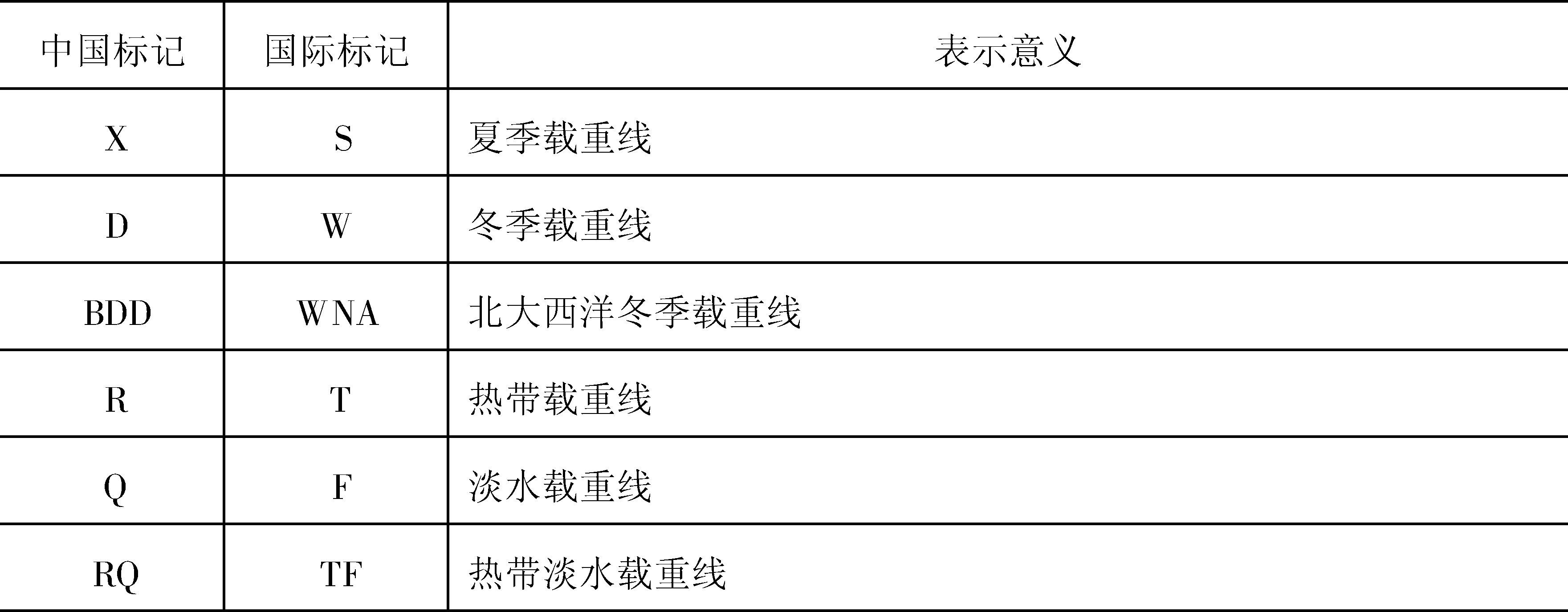 国际航行船舶载重线标志 ☚ 吃水 空船吃水 ☛ |