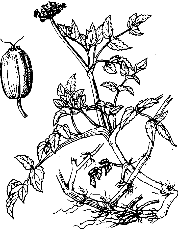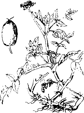 水 芹 水芹分尖叶芹和圆叶芹两类。尖叶芹小叶近卵形,叶缘钝锯齿状,叶柄绿色,在水中为淡绿,土内为白色,纤维较多,香味淡,品质较差; 圆叶芹小叶广卵圆,叶缘钝锯齿状,叶柄组织较致密,一般行培土软化,纤维少,香味浓。如无锡的圆叶芹,常熟白芹等。 水芹喜冷凉,较耐寒,适于冷凉、短日照季节生长。一般选低洼田,深耕施肥。夏季母茎休眠芽在25℃以下萌发,长江流域8月至9月栽种。早水芹需催芽,选侧芽饱满的母茎捆扎成束,交叉堆放于阴凉通风处,覆草,早晚浇水保持湿润,10天左右各节生根后栽种。中、晚熟芹不用催芽。秋栽株行距为30~36厘米。春栽发棵小,株行距为12~15厘米。栽种后灌水,使母茎半露水面。7~10天萌芽,施苗肥,15天后晒田,促使茎叶及根系发育。30天后苗高12~15厘米时将苗拔起,原地重栽,每穴3~4株。或在苗高30厘米时拔苗重栽,深栽约18厘米,以软化茎叶。留种田不能深栽,以免影响发棵。暴雨时及时排水,天旱时晚灌早排,追肥时保持浅水。霜降后停止追肥,并逐渐增加水层深度,水深以在叶柄分叉下6~9厘米为宜,最高不能超过此分叉。结冻前灌水防寒,水深最高不超过叶尖。水芹收获期从10月至翌年4月上旬抽薹为止。水芹茎叶中空,含水量高,不耐贮藏。亦可旱栽,选持水力强的土壤,经常保持土壤湿润,用分期培土软化的方法进行栽培。虫害有蚜虫。 水芹药名。出 《千金翼方·本草》。又名芹菜、水芹菜。为伞形科植物水芹Oenanthejavan-ica(Bl.) DC. 的全草。全国大部分地区均有分布。甘,凉。清热,利尿,止血,降压,解毒。 水芹water dropwortOenanthe stolonifera DC.,又称刀芹、蕲、楚葵、蜀芹、紫堇。伞形科,水芹属。多年生水生宿根草本。原产亚洲东部。分布于东亚和东南亚地区。中国中部、南部栽培较多。分尖叶芹和圆叶芹两类。奇数二回羽状复叶,互生,小叶对生,叶绿锯齿状;叶柄细长、绿色。3~4月抽生花茎,6~8月开花,复伞形花序;花白色略红。双悬果。2n=2x=22。喜冷凉、较耐寒,适于冷凉短日照季节生长。秋季在茎节上侧芽萌发成新株供繁殖。选淤泥层深厚的水田栽培,一般春季培育母株,秋季栽植,冬春采收。也可在陆地土壤中栽培。以嫩茎和叶柄炒食,其味鲜美,但味不及芹菜浓。