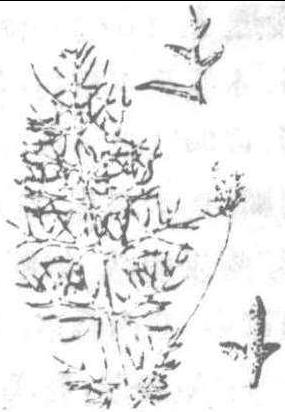 水蕨 水蕨floating fern,oriental water fernCera-topteris thalictroides Brongn.,真蕨纲,水蕨科,水蕨属。一年生水生植物。生于池沼或淤水沟中。分布于长江流域及其以南各省区;亚洲、非洲及欧洲的暖温带和热带其他地区也有分布。植株高30~80 cm,绿色,多汁,幼时漂浮,成长期以须根固着于淤泥中。根状茎短,直立。叶簇生,叶柄与叶片近等长,光滑无毛。不育叶狭矩圆形,2~4回羽裂,裂片披针形。能育叶较大,矩圆形或卵状三角形,2~3回羽状深裂,裂片线形,渐尖头。叶脉网状。孢子囊沿网脉疏生,幼时为反卷的叶边覆盖,成熟后叶边多少张开。全株药用,可散血拔毒,治跌打损伤。嫩叶可作蔬菜或饲料。 水蕨shuǐ jué《本草纲目》菜部第27卷水蕨(4)。药名。 |